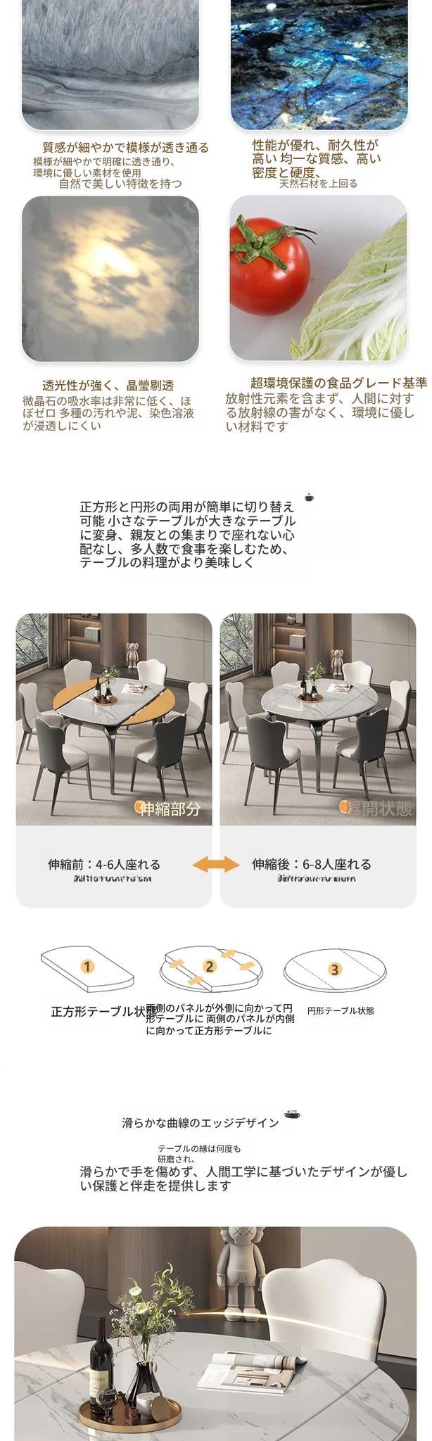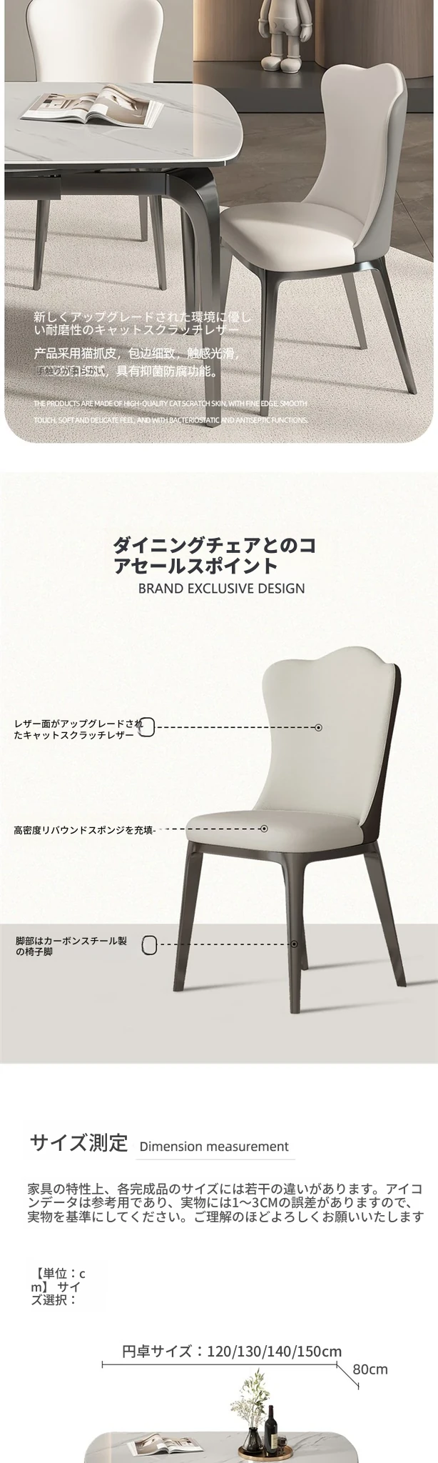1.4天然ミクロ石折りたたみテーブル+猫爪皮製ダイニングチェア*6