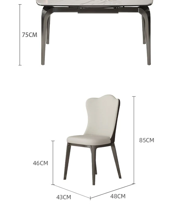 1.5天然ミクロ石折りたたみテーブル+猫爪皮製ダイニングチェア*6
