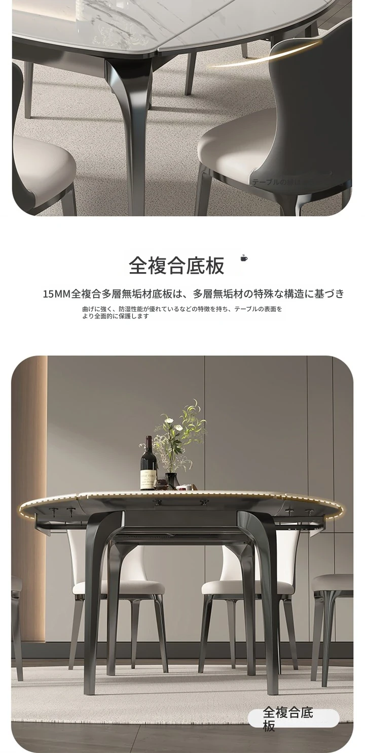 1.2天然ミクロ石折りたたみテーブル+猫爪皮製ダイニングチェア*6