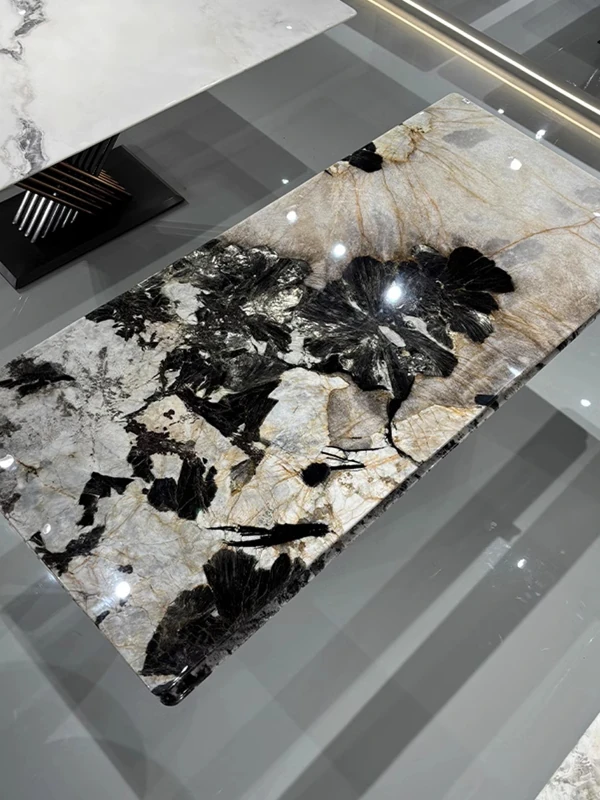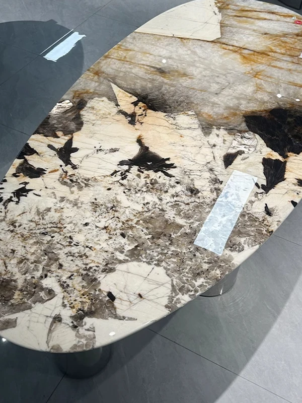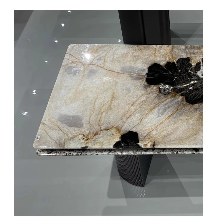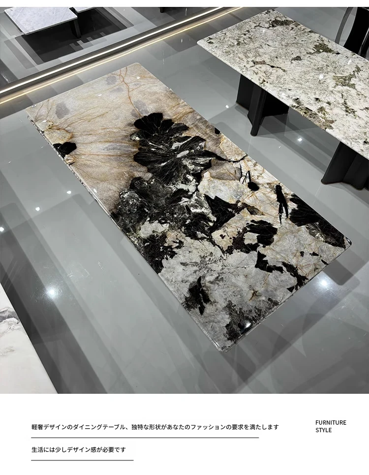 黒ダイヤモンドパンドラ高級石材イタリアンライトラグジュアリー天然大理石長方形ダイニングテーブル - おしゃれで洗練された空間を演出する、家庭用に最適な一品!