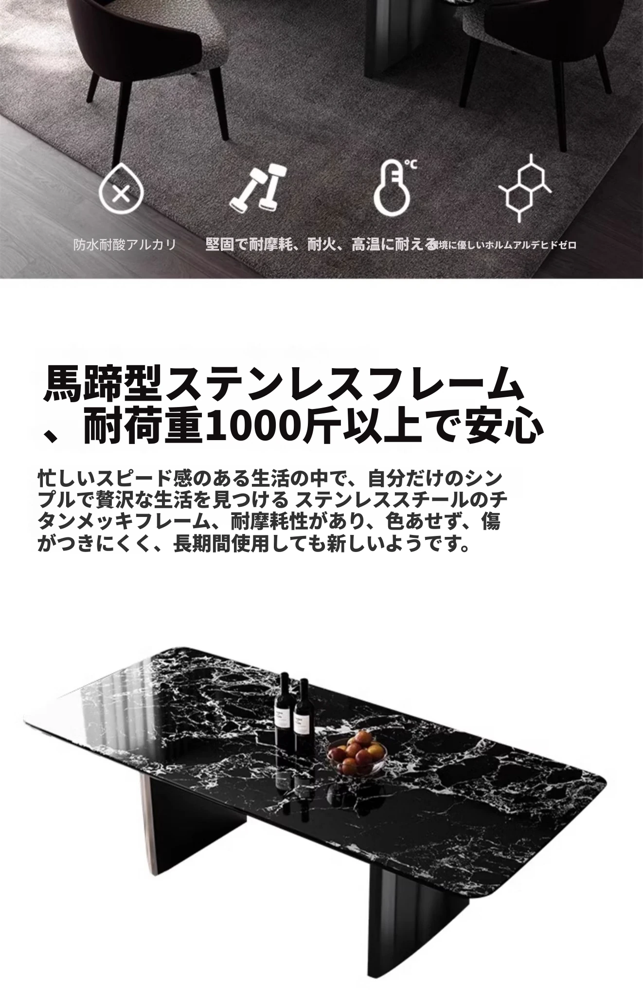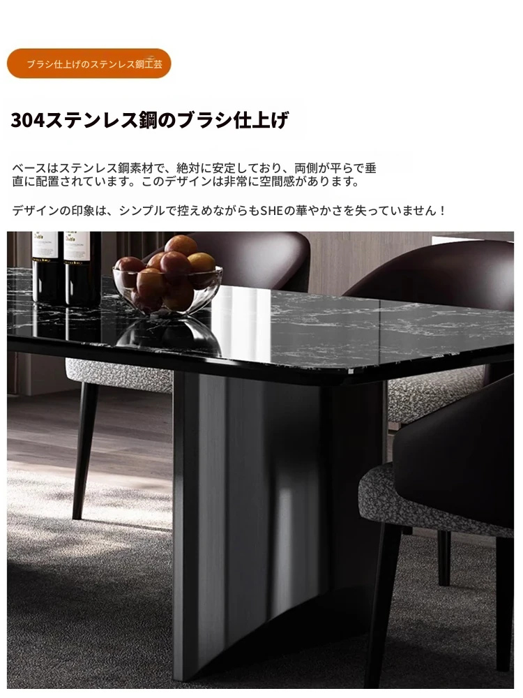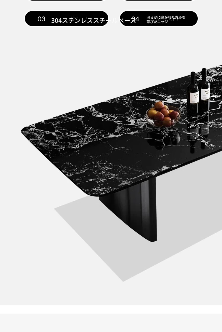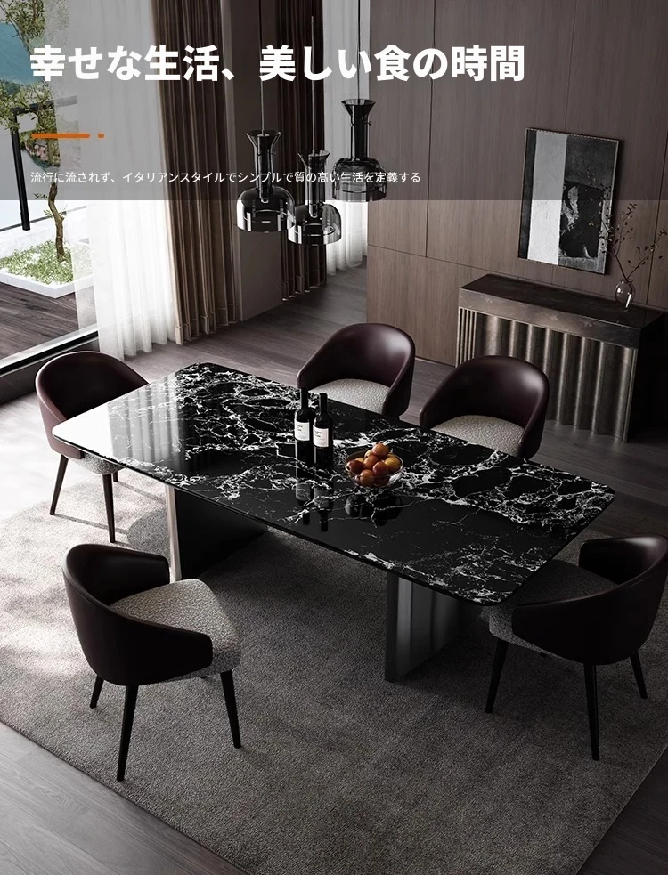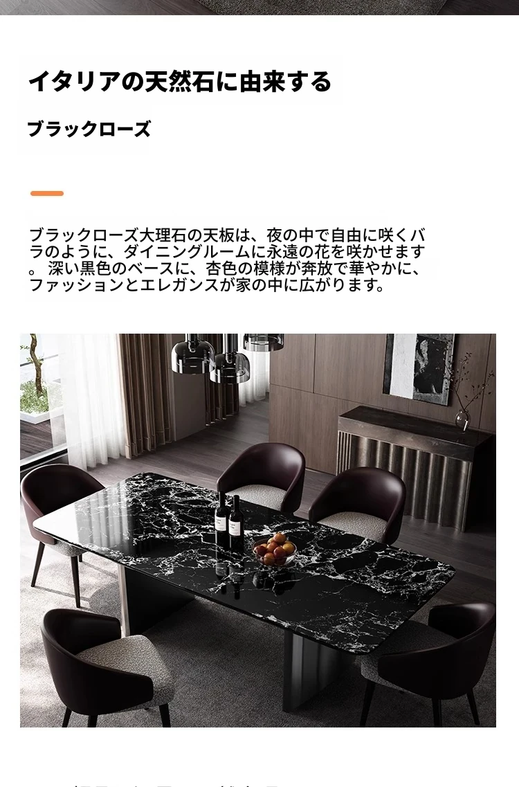 黒バラ天然大理石のラグジュアリーな長方形ダイニングテーブル - 高級輸入品、洗練されたデザインで別荘にもぴったり!家族や友人との特別なひとときを演出します。
