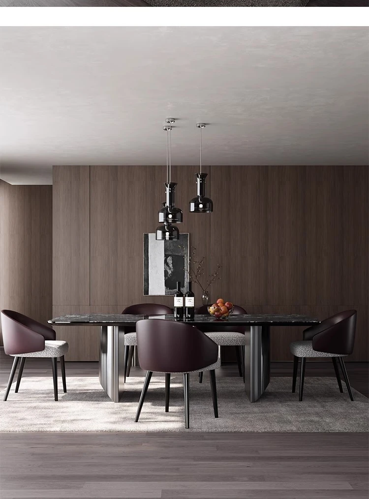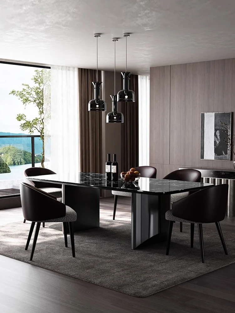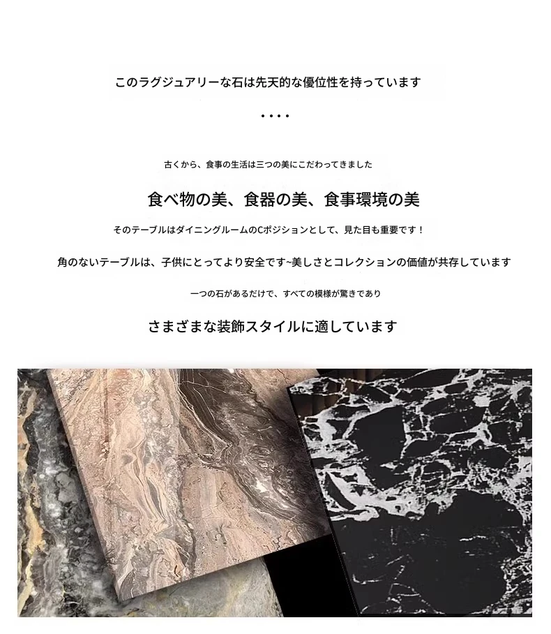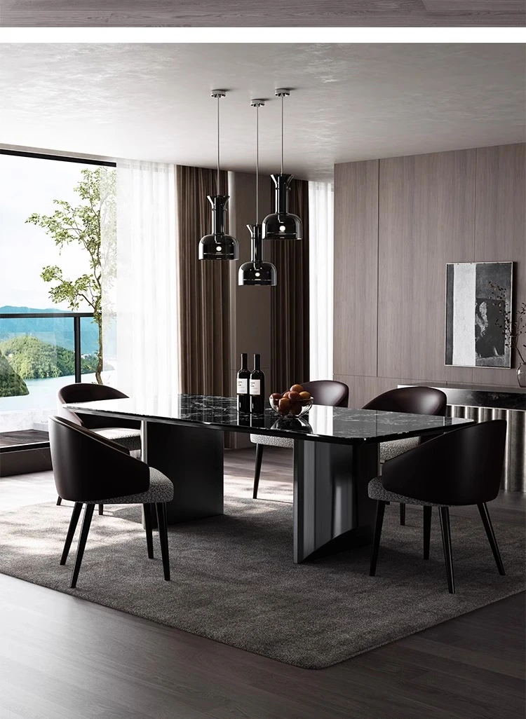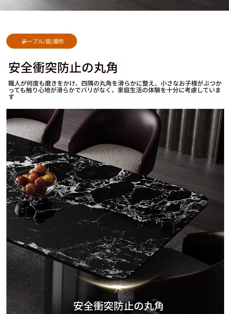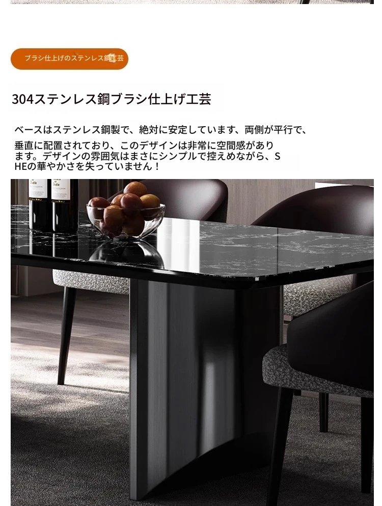 黒バラ天然大理石のラグジュアリーな長方形ダイニングテーブル - 高級輸入品、洗練されたデザインで別荘にもぴったり!家族や友人との特別なひとときを演出します。