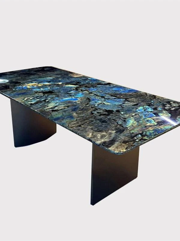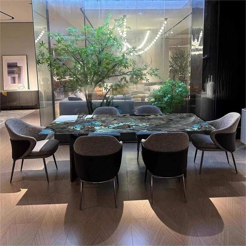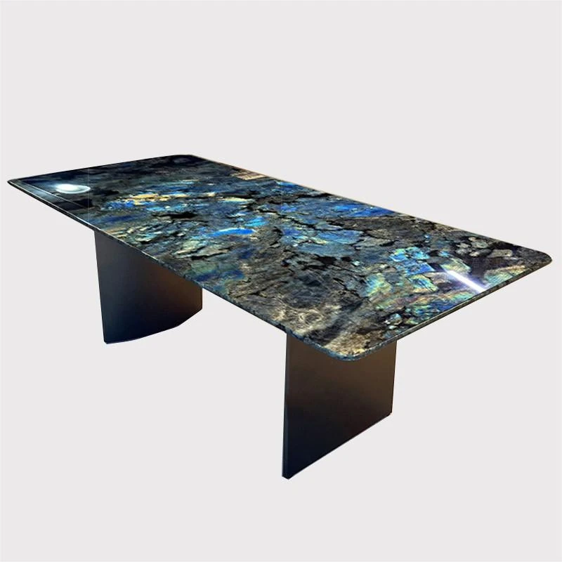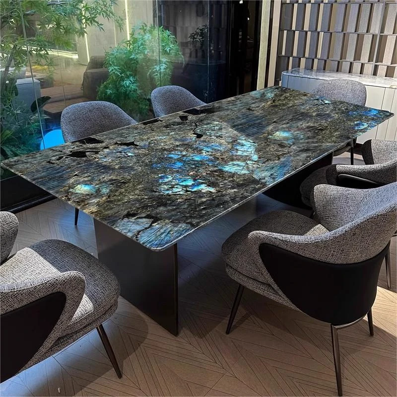 ブラジル産ブルージェイド豪華石製ダイニングテーブル - イタリアンライトラグジュアリーデザインのハイエンド家具、天然サファイア大理石の美しさを感じて。