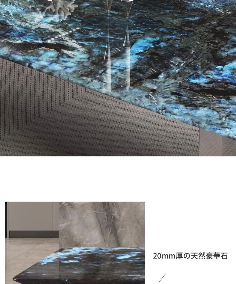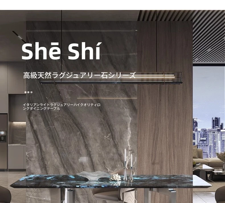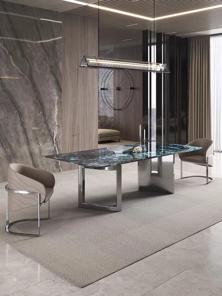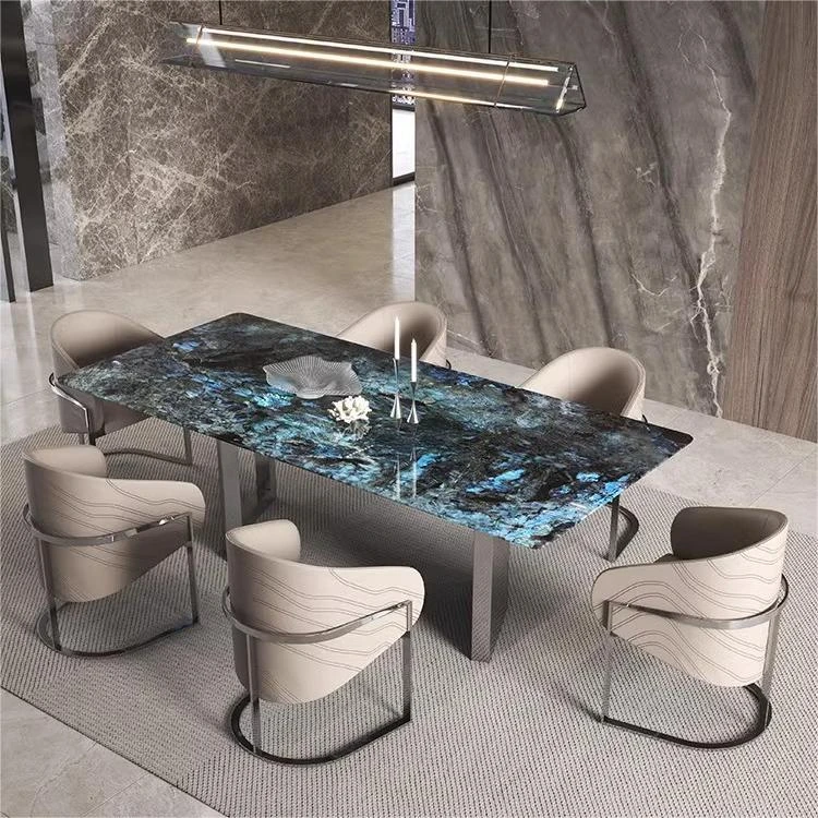 ブラジル直輸入の純天然ブルージェイド豪華石材ダイニングテーブル - イタリアンラグジュアリー、洗練された高級別荘向けのサファイア大理石ダイニングテーブル。あなたの食卓を特別な空間に演出します!
