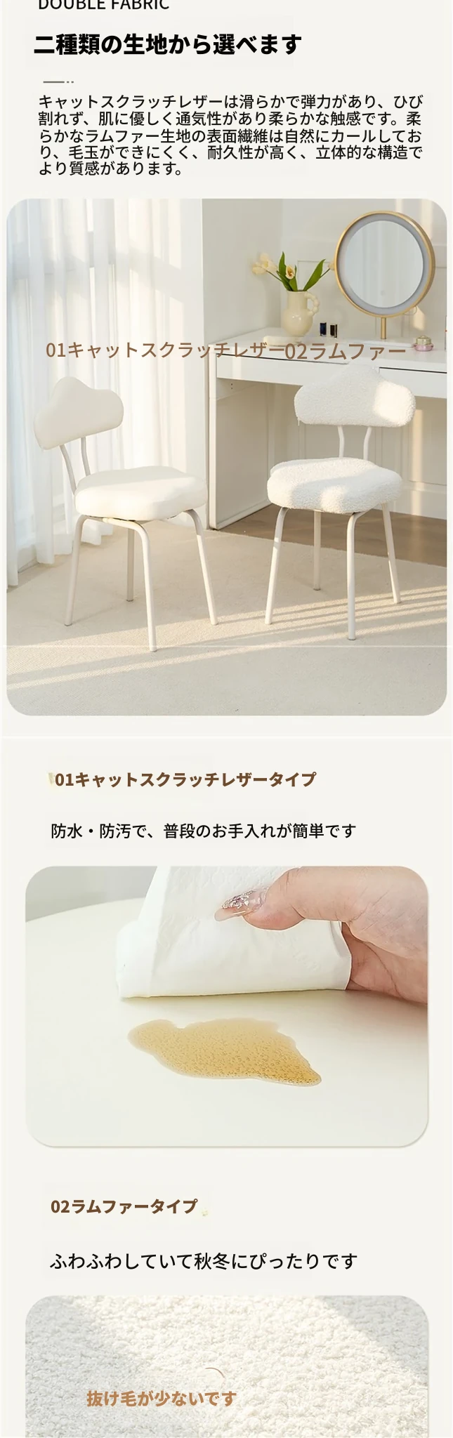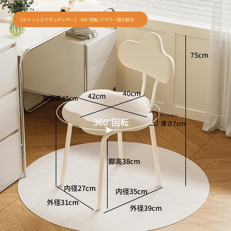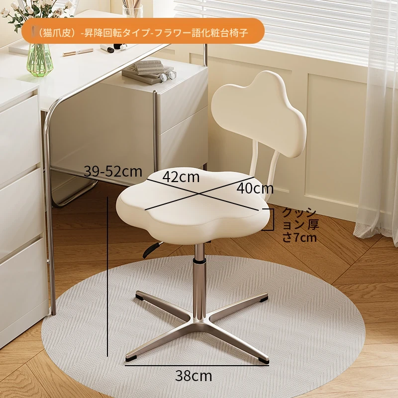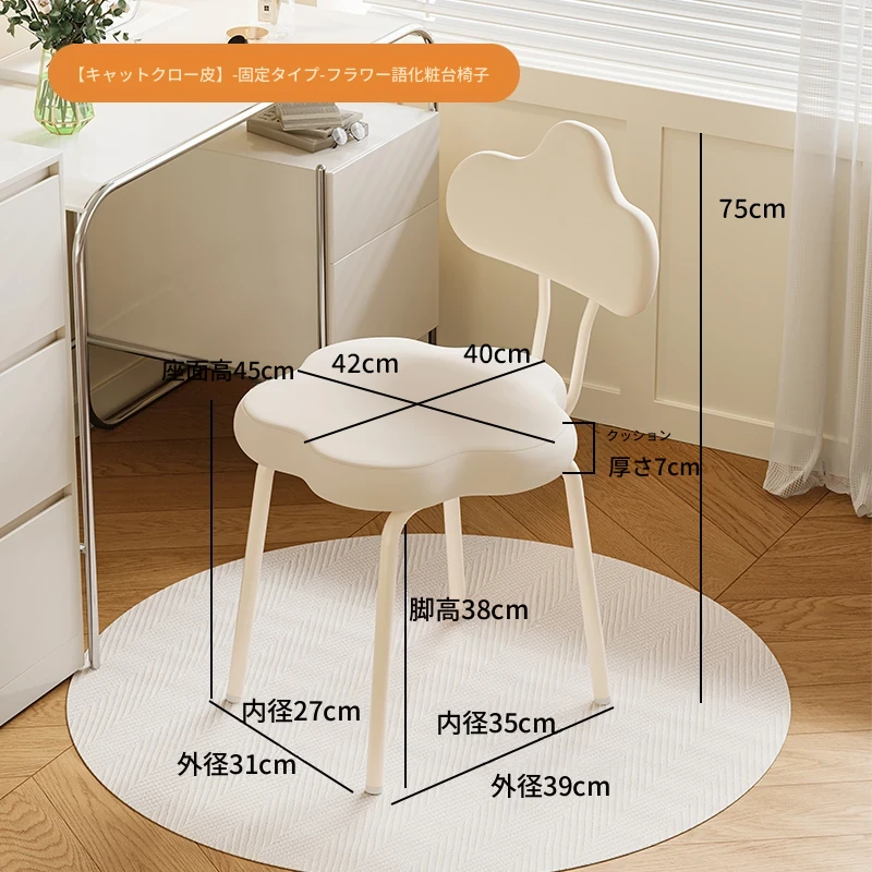 クリームホワイトキャットグラブスキン固定タイプフラワーメイクアップチェア