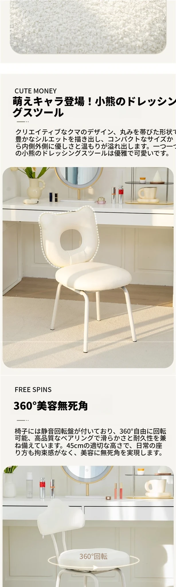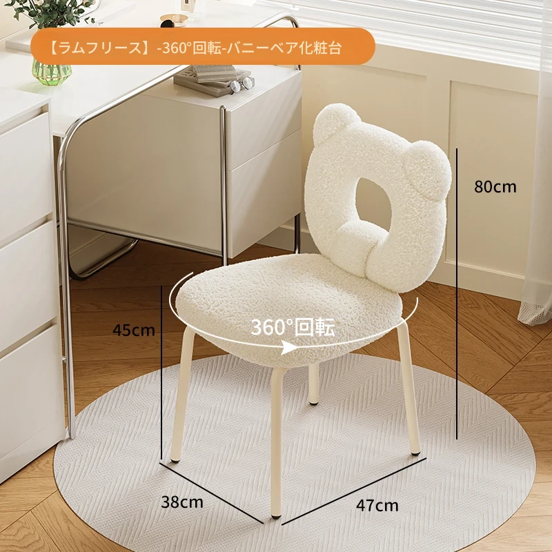 ラムフリース360°回転ボニークマメイクアップチェア