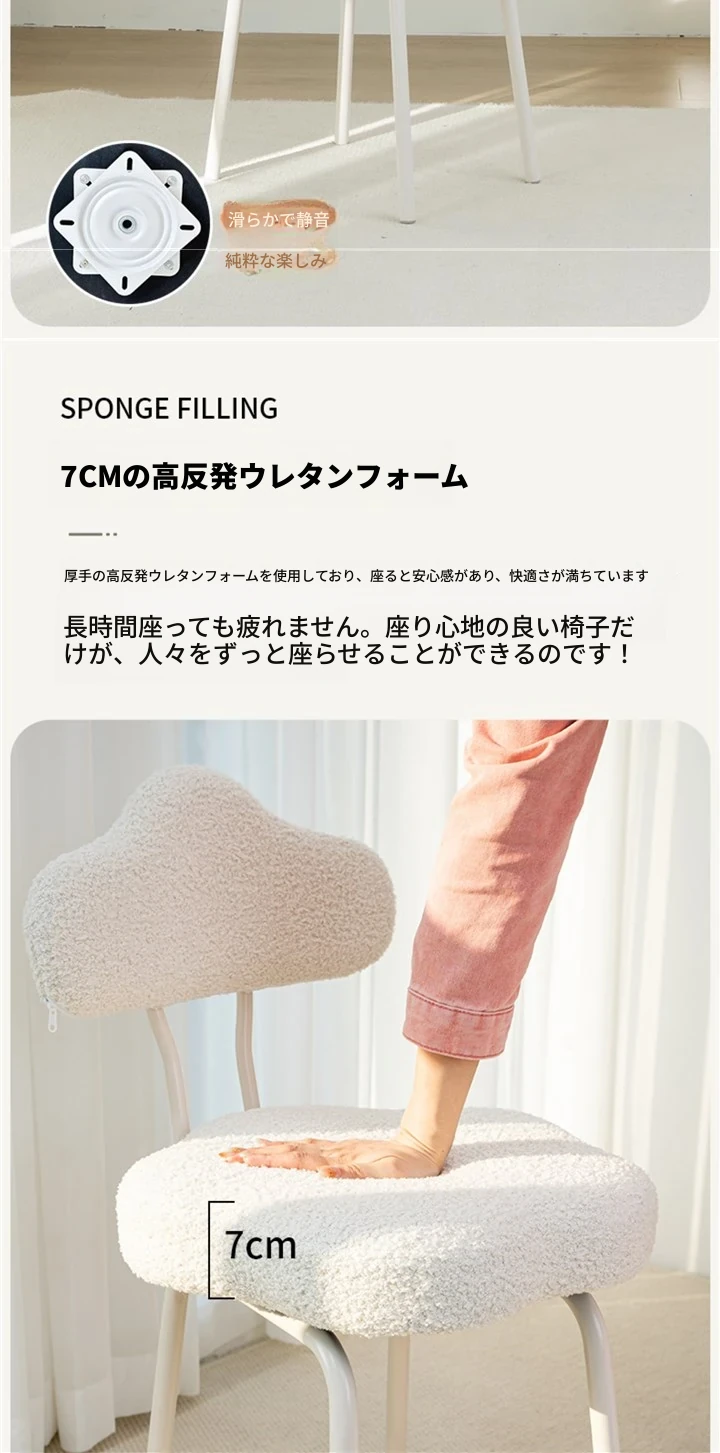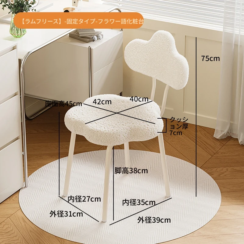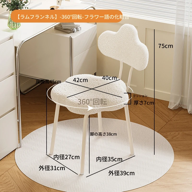 ラムフリース360°回転フラワーメイクアップチェア