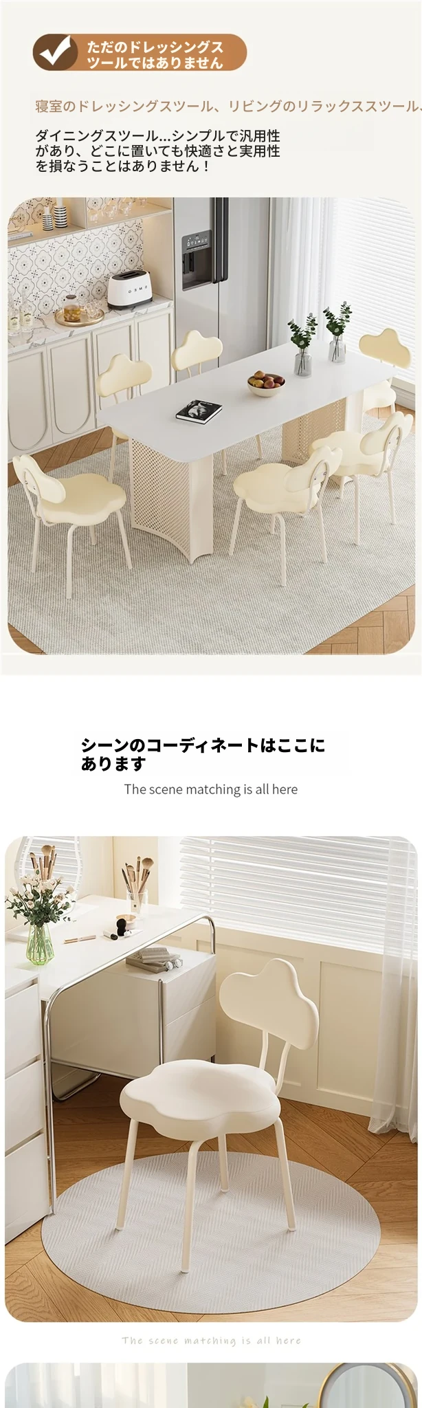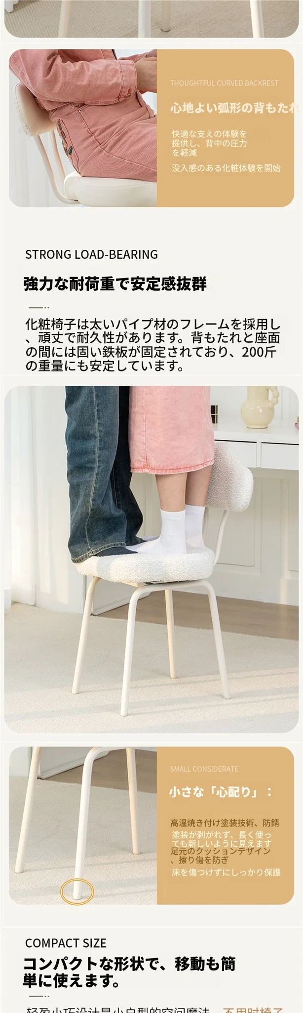 クリーム風化B型メイクアップスツール 2023年新作 化粧台用スツール 女子向け 寝室にぴったりのトレンド背もたれ付きメイクチェア 高級感あふれるデザイン