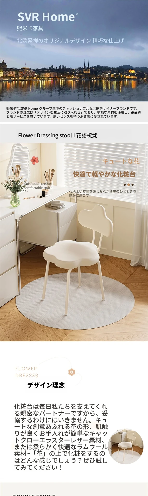 【ラムフリース】-固定タイプ-フラワーメイクアップチェア