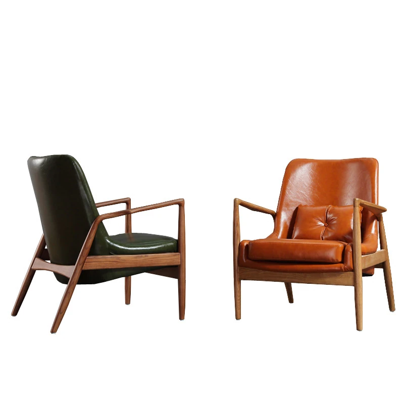 デンマークデザインの北欧スタイル実木ソファ、レザーとファブリックのコンビネーション!リラックスできるアームチェア、布張りの背もたれ付きシンプルでおしゃれな一人掛けソファ。お部屋をおしゃれに演出しましょう!