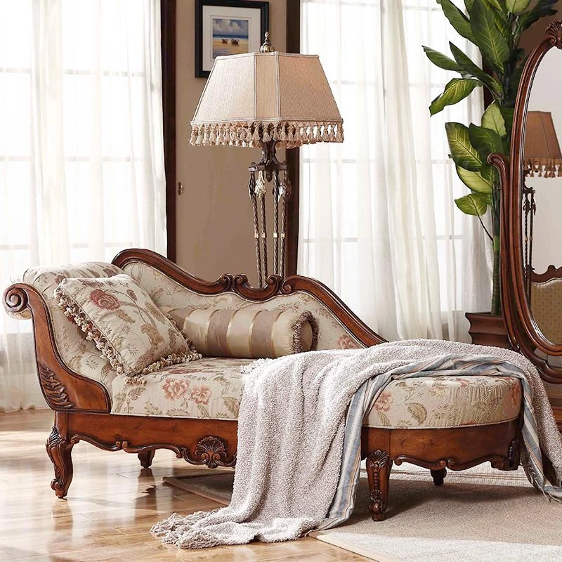 アメリカンスタイルの貴婦人ソファ|リビングや寝室に最適な布製のラウンジチェア|快適さを追求したレトロなデザインの木製エレガントソファ|毎日のリラックスタイムを贅沢に彩る!