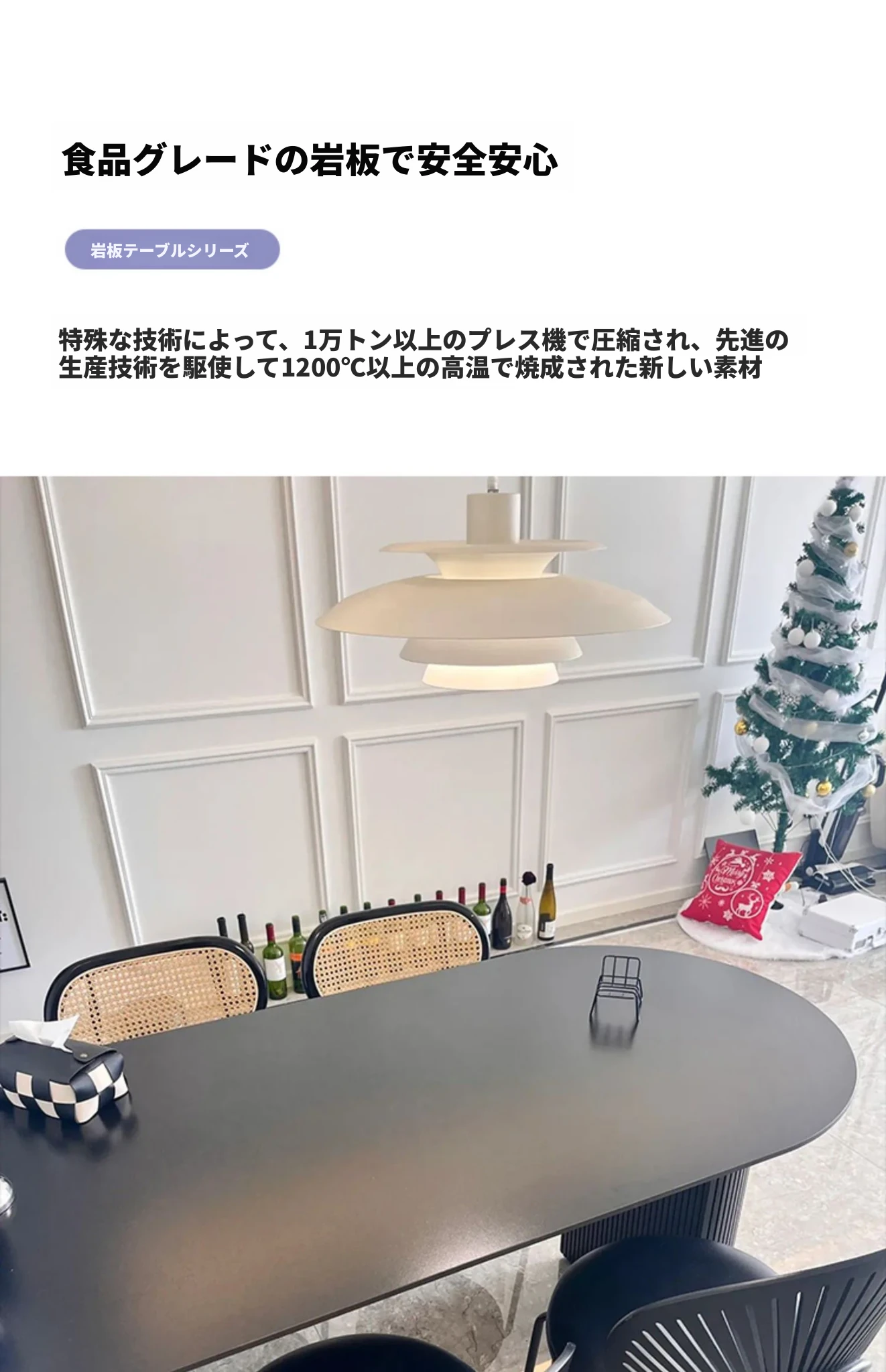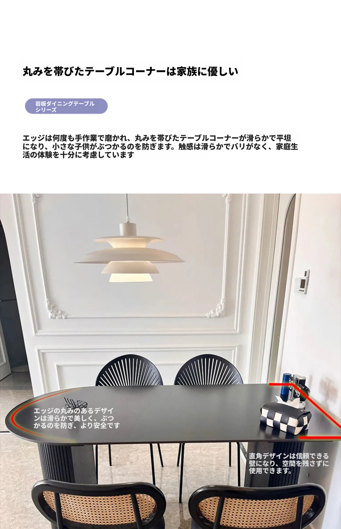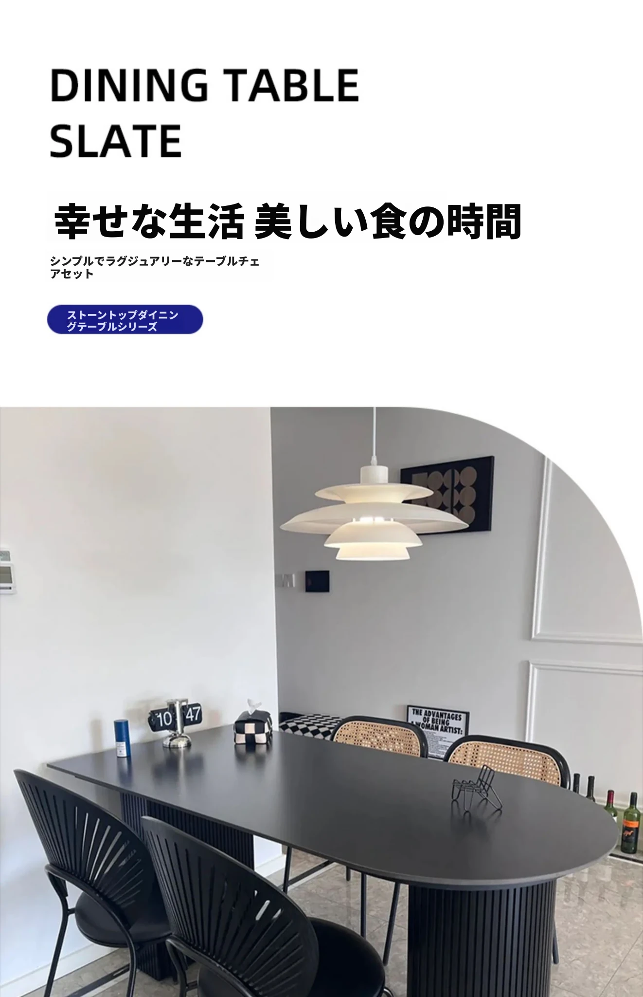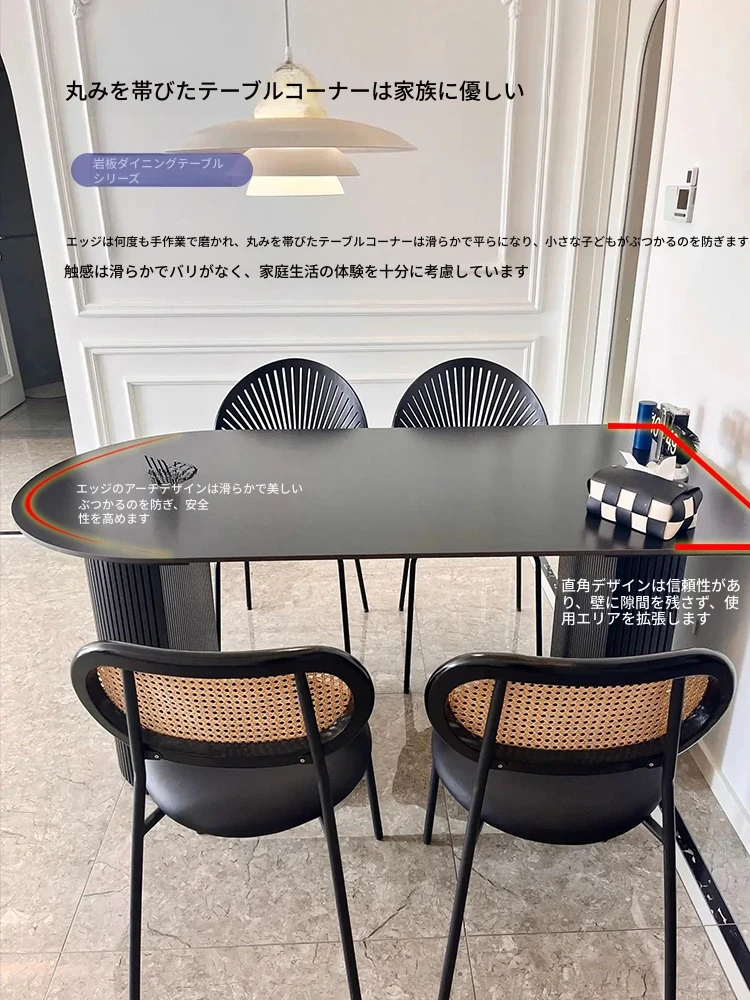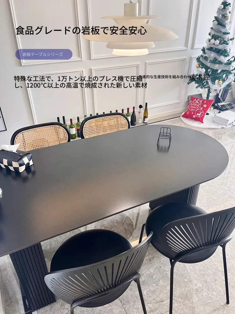 壁に寄せられる黒いダイニングテーブル|広東省仏山産の無垢材使用|フランス風レトロデザイン|現代的な軽奢華感漂うオーバル型|おしゃれなインテリアにぴったり!