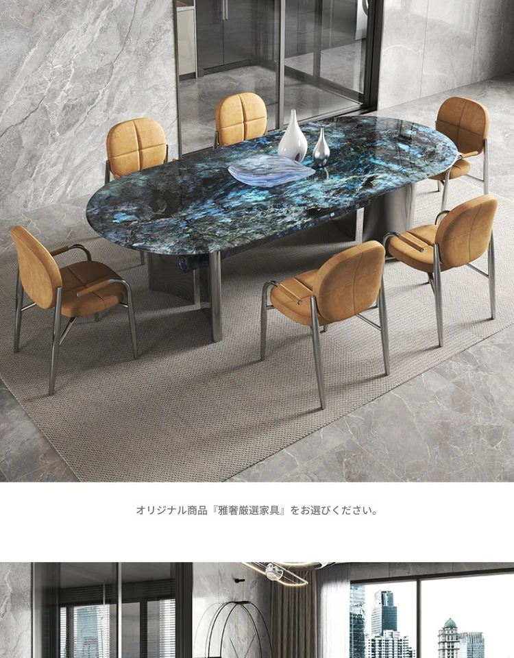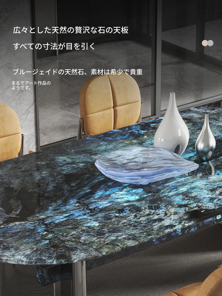 ブルージェイド天然ラグジュアリー石長テーブル【2.4*1.1M】