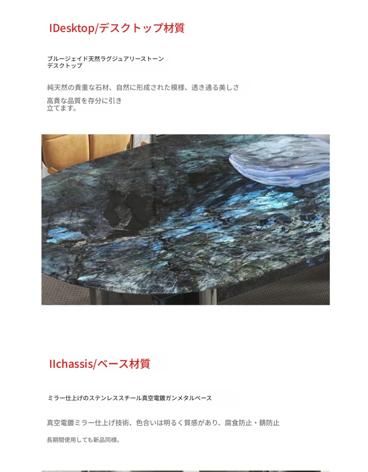 ブルージェイド天然ラグジュアリー石長テーブル【1.8*0.9M】