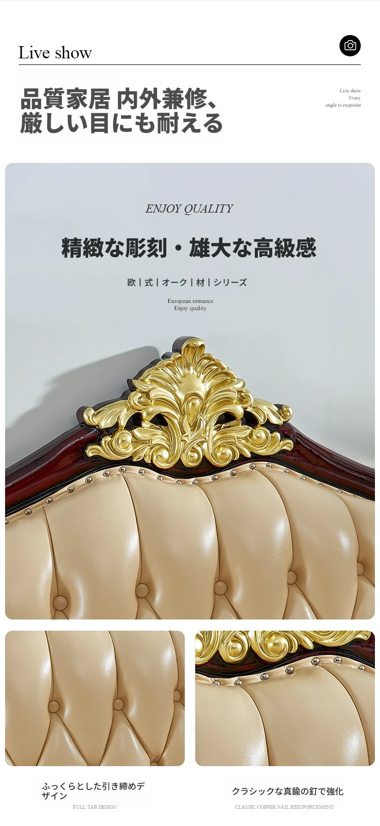 ヨーロピアンスタイル本革ソファ124セット|豪華な大邸宅にぴったり!アイボリーホワイトの高級無垢材使用、リビングを華やかに演出する全室用家具セット。