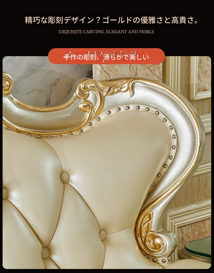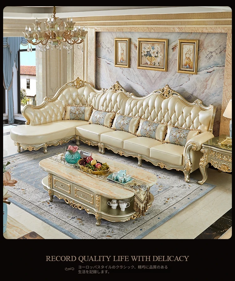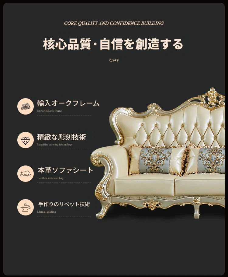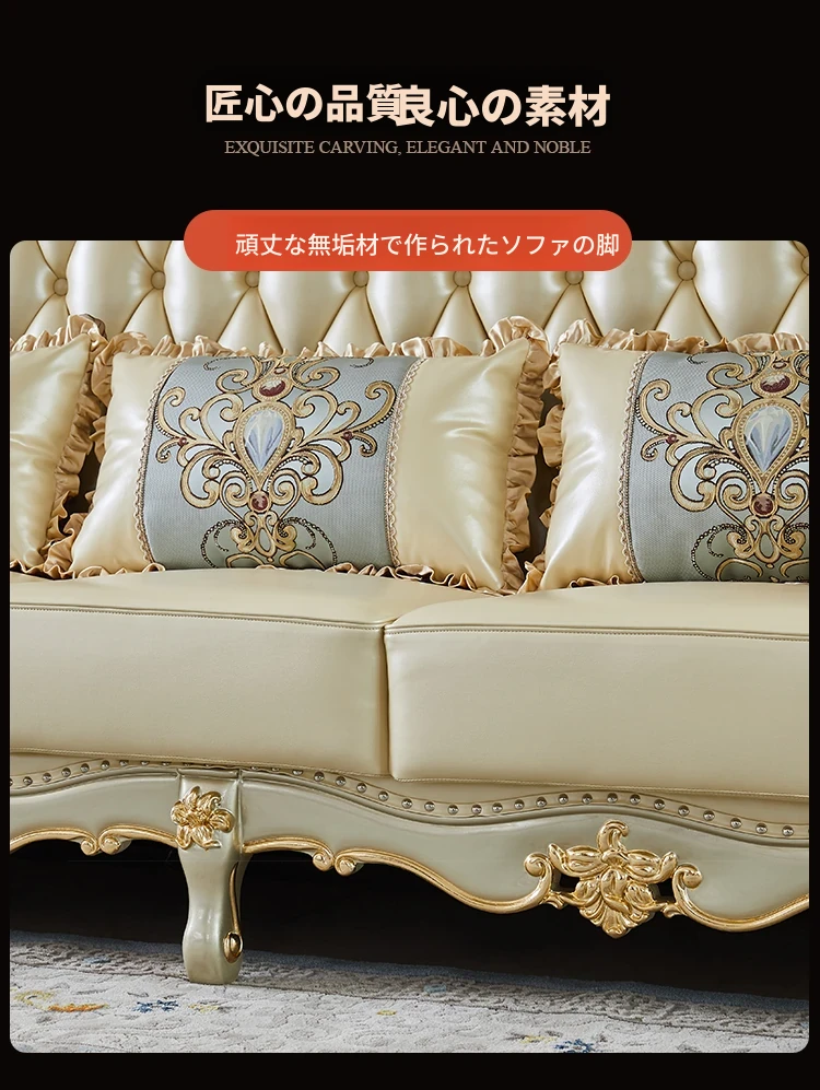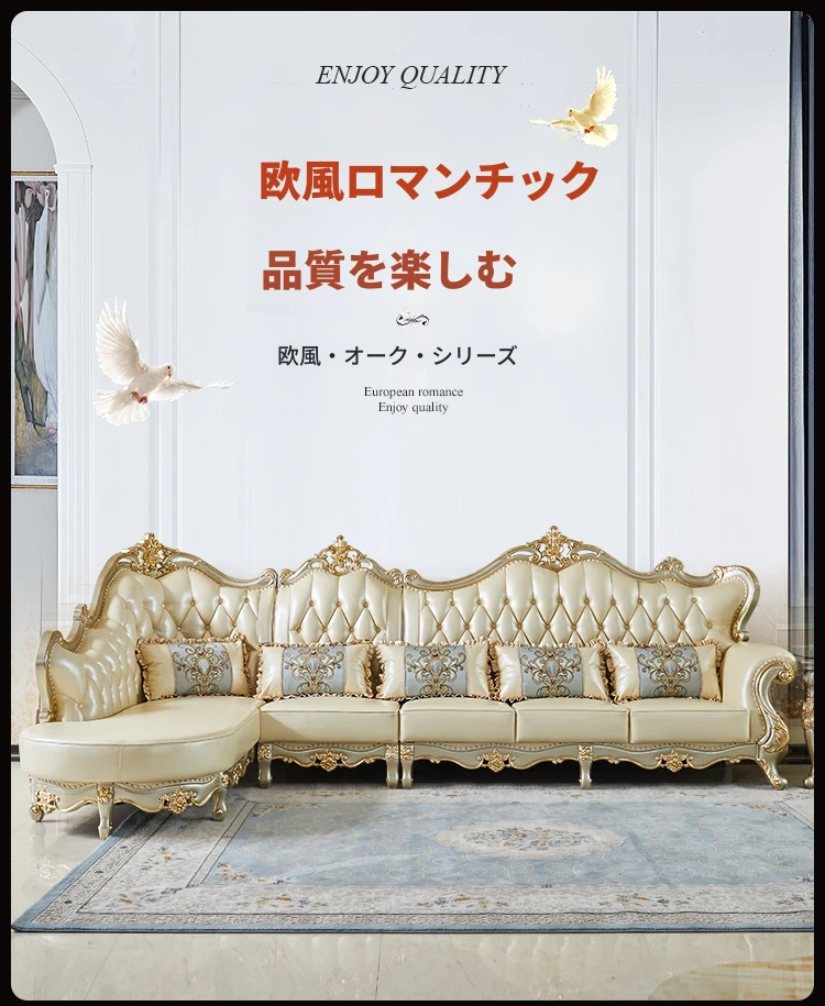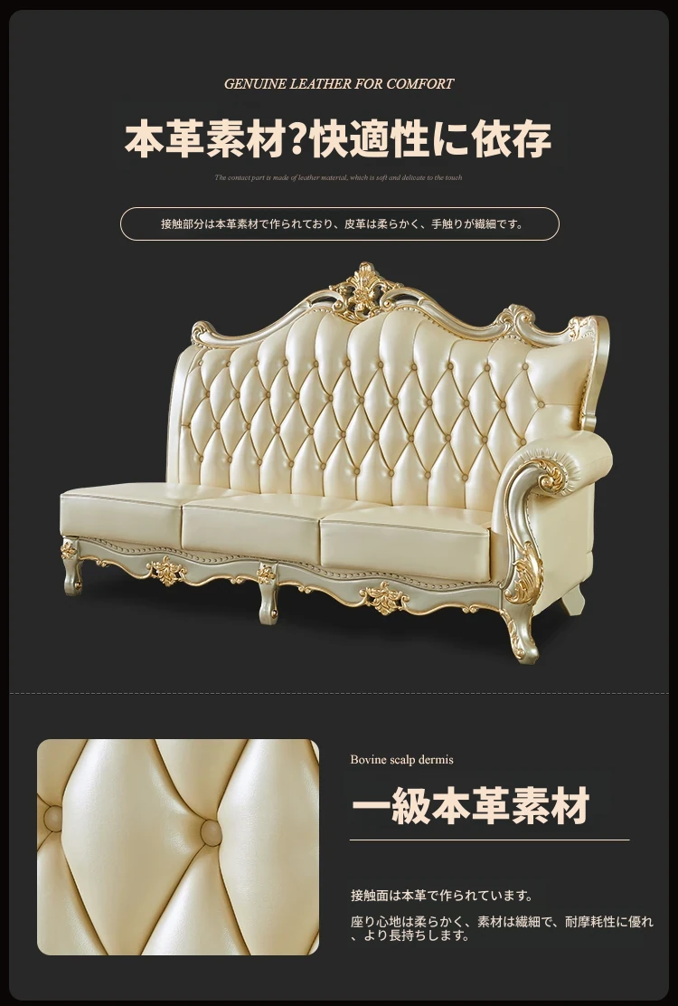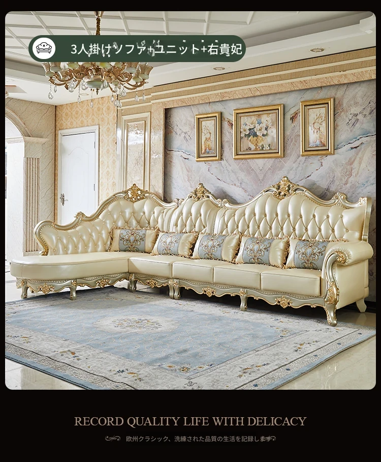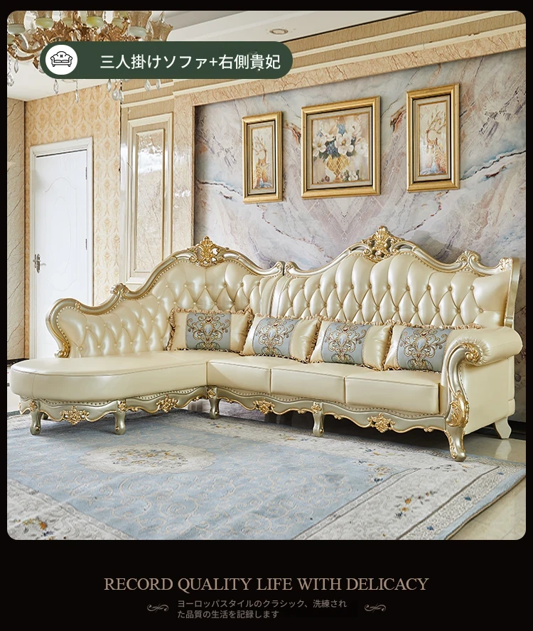 欧風デザインの本革ソファセット - 小型リビングに最適な高級感溢れるレザー製コーナーソファ!快適さとスタイルを兼ね備えたおしゃれな家具で、あなたの空間を華やかに演出します。