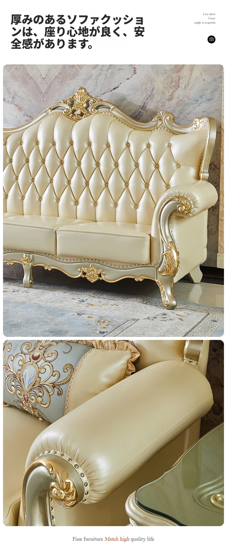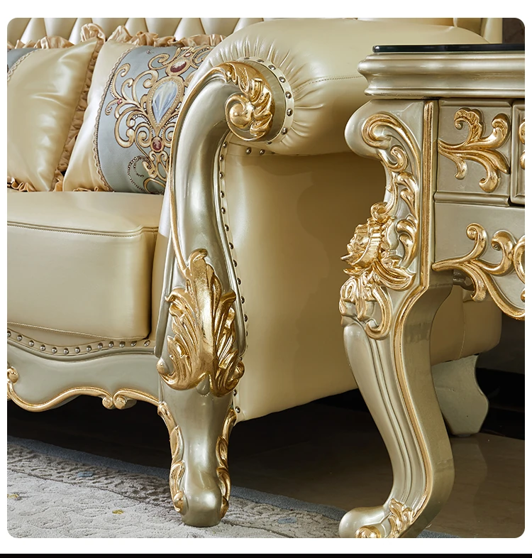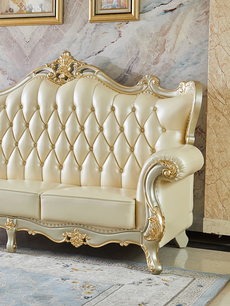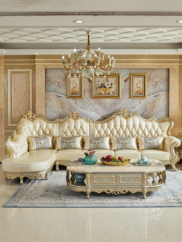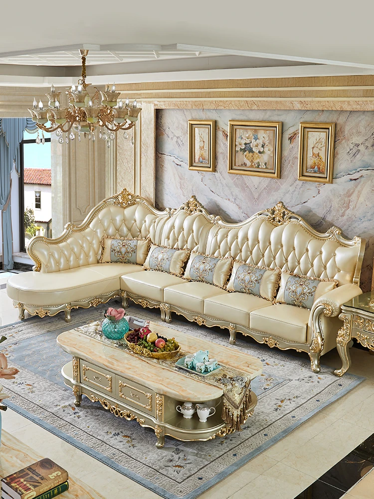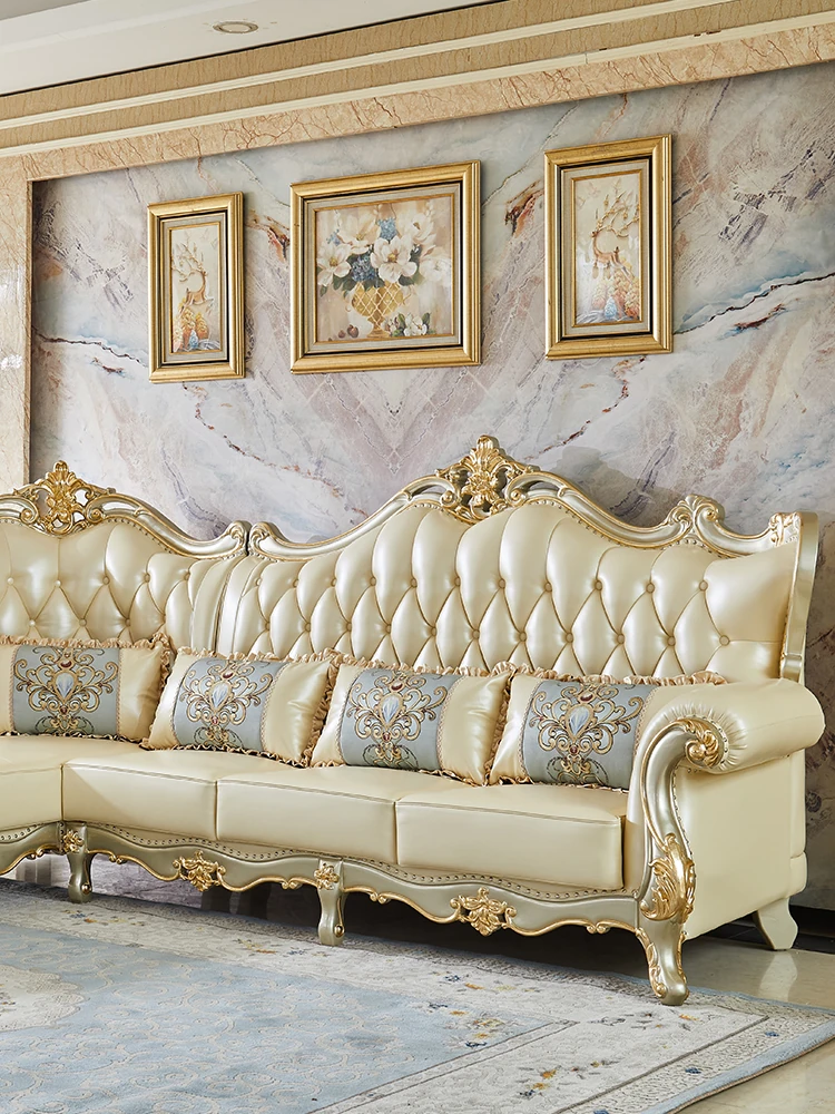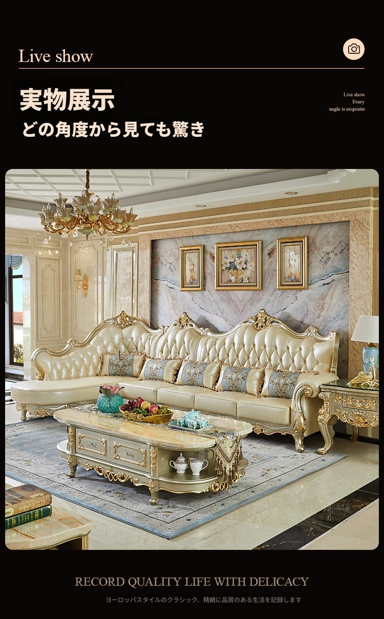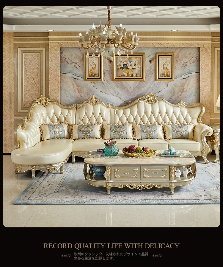 欧風デザインの本革ソファセット - 小型リビングに最適な高級感溢れるレザー製コーナーソファ!快適さとスタイルを兼ね備えたおしゃれな家具で、あなたの空間を華やかに演出します。