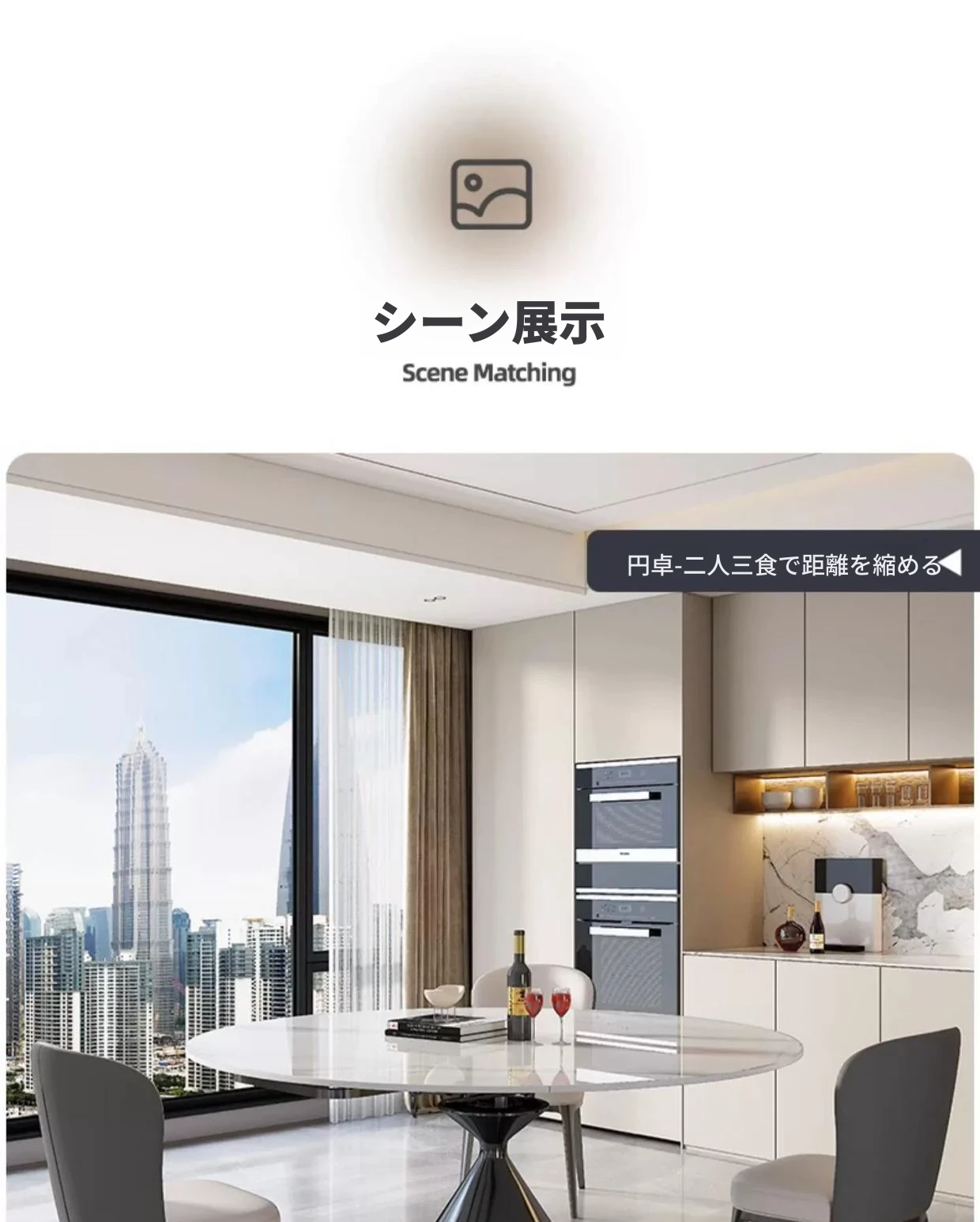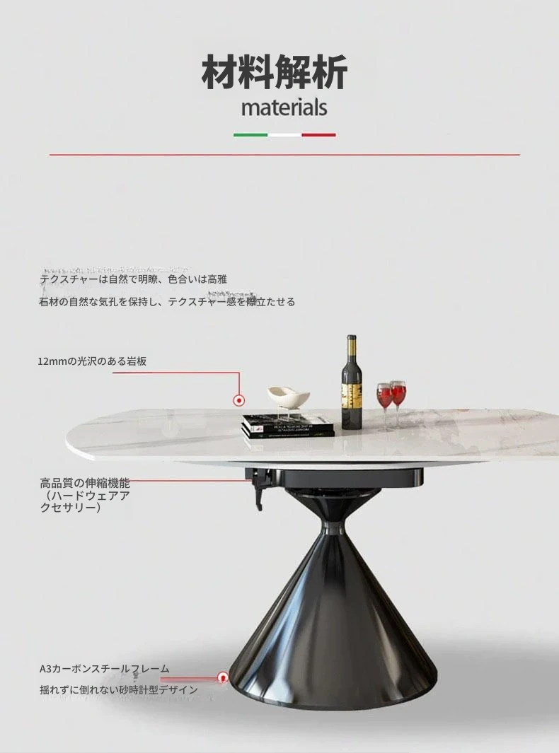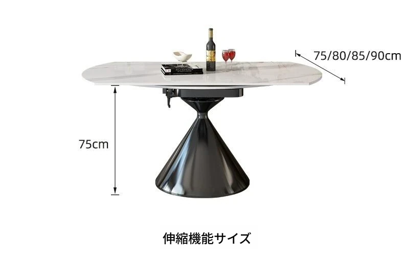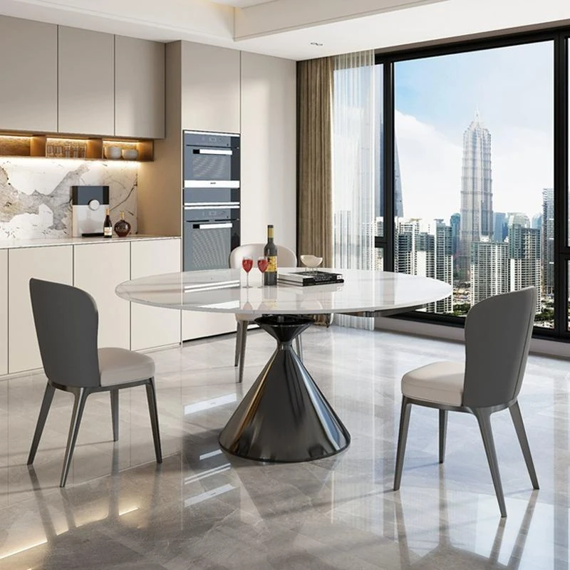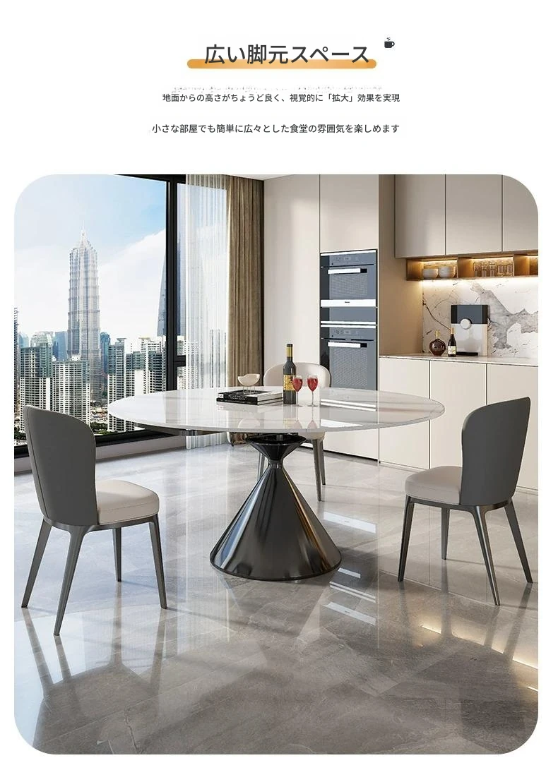 イタリアンミニマルデザインの高級感漂う伸縮式回転岩板ダイニングテーブルセット - 小型住宅に最適な折りたたみ円形テーブルと椅子のコンビネーション。快適な食卓を演出し、スペースを有効活用!