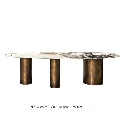イタリアンラグジュアリー大理石長方形ダイニングテーブルとチェアセット - デザイナーズ高級岩板・ステンレス製ミニマルラウンドテーブルで、洗練された空間を演出!
