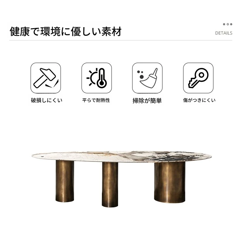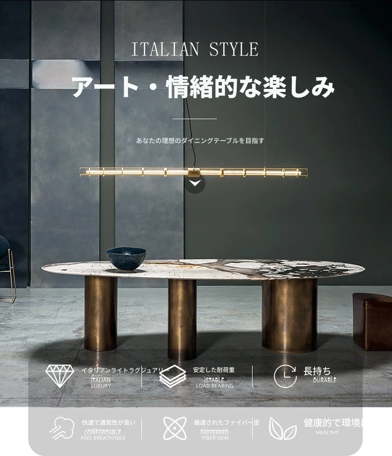 アンティーク風の高級石製ダイニングテーブル インポート・パンドラの天然大理石使用 イタリアンミニマルスタイルのテーブル&チェアセットで、洗練された食卓を演出!