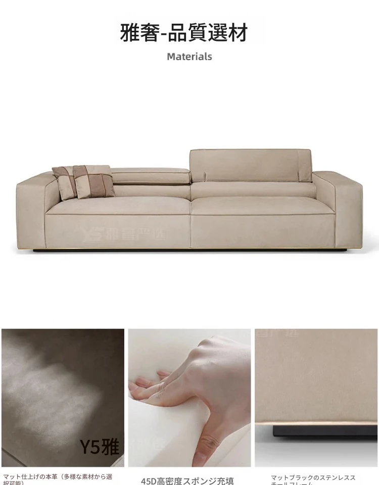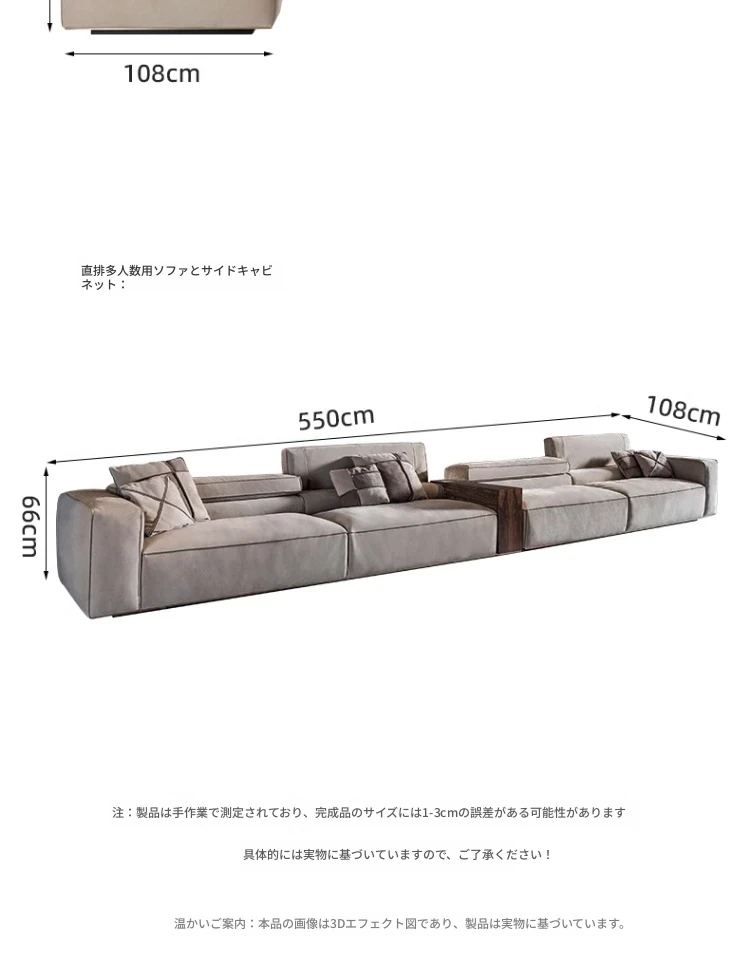 スエード半皮-ストレートソファ+サイドキャビネット【5.5メートル】