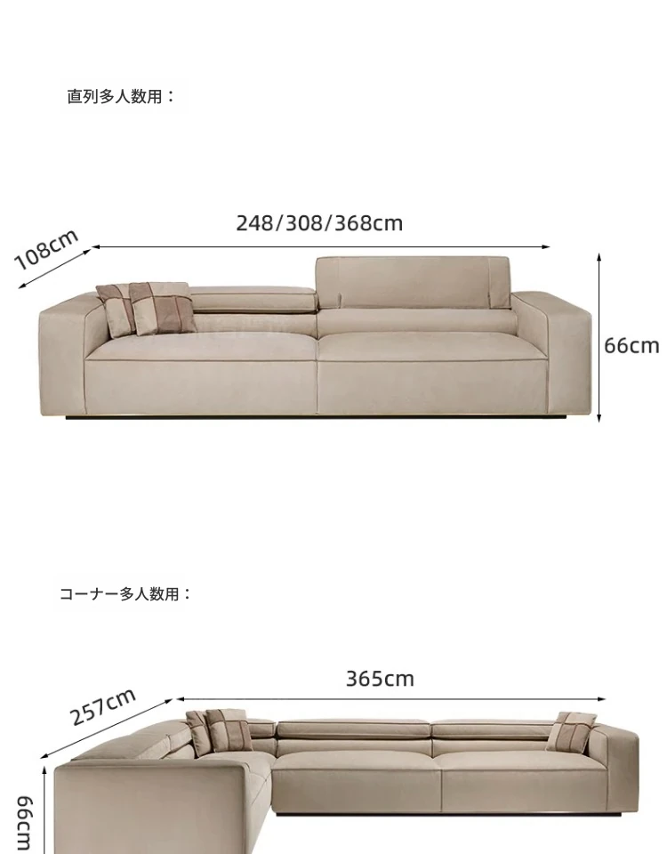スエード布-コーナーソファ【3.65*2.57メートル】