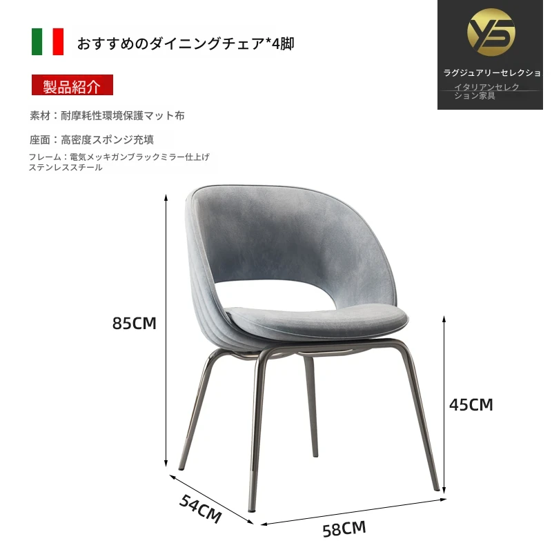 ステンレス+サンド布製ダイニングチェア【4脚】