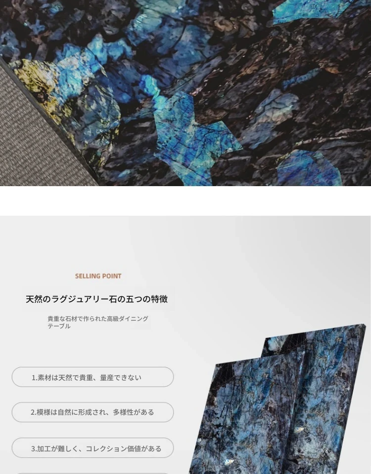 ブルージェイドラグジュアリー石製ダイニングテーブル【2.2*1.0M】