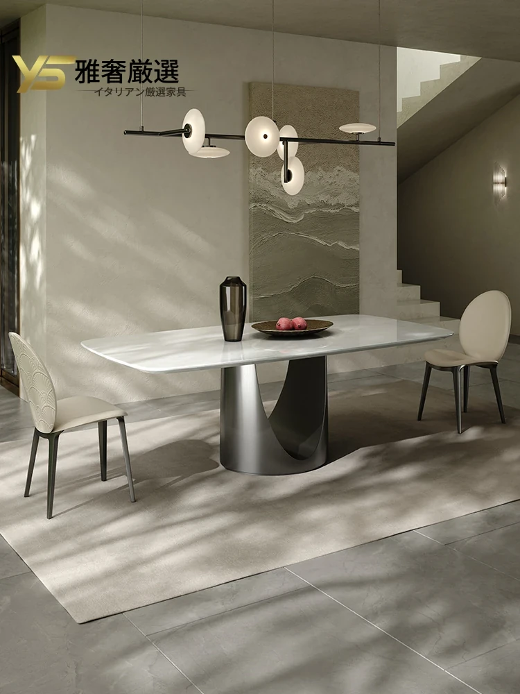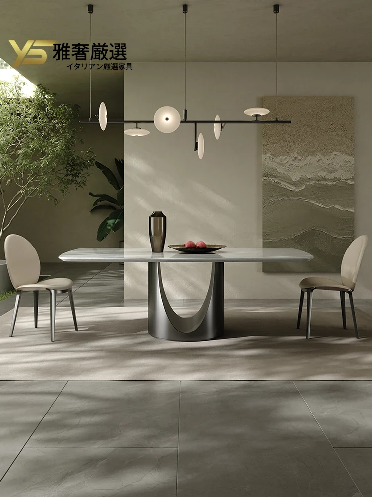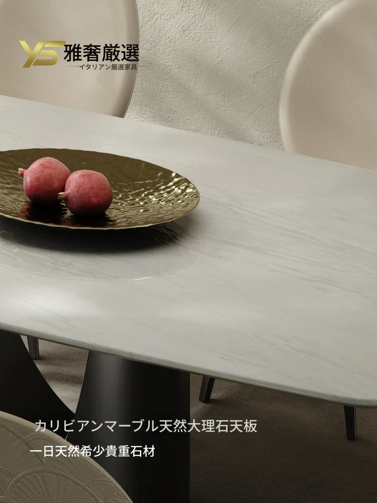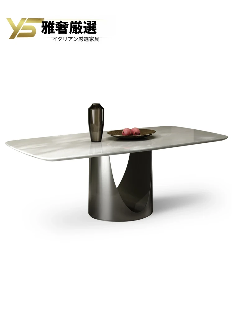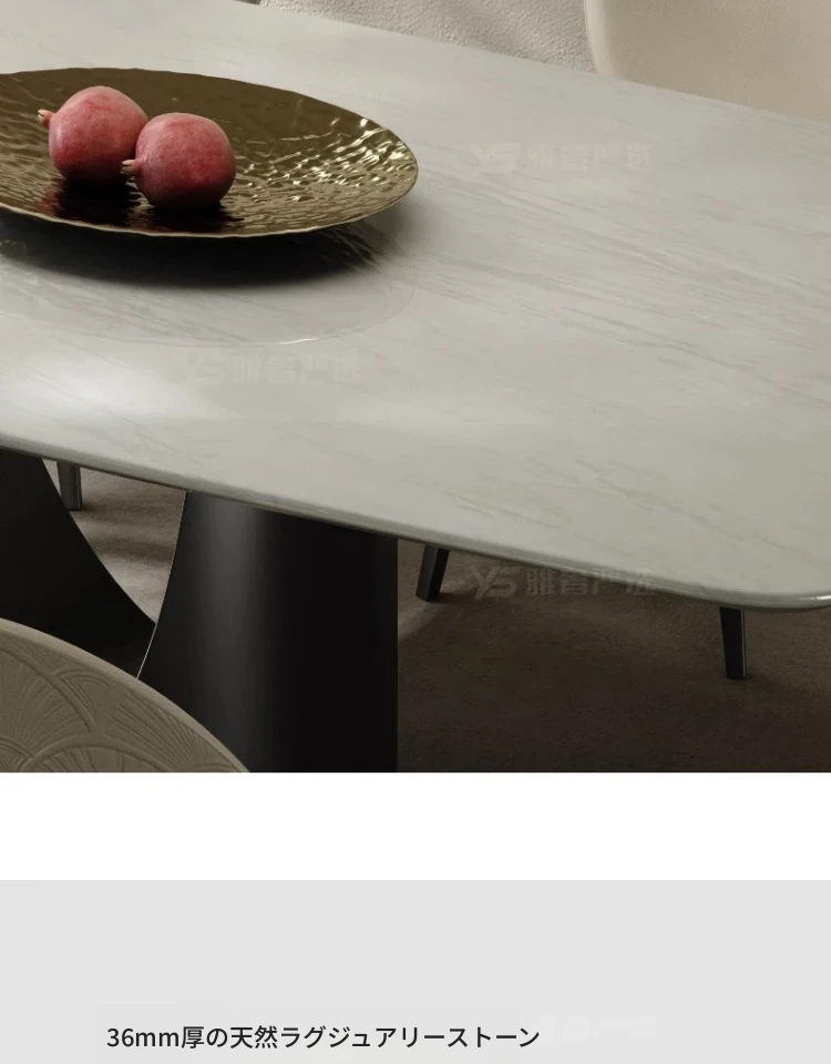 カリーアイスジャスパー天然石ロングダイニングテーブル【2.2*1.0メートル/ブラックチタン】