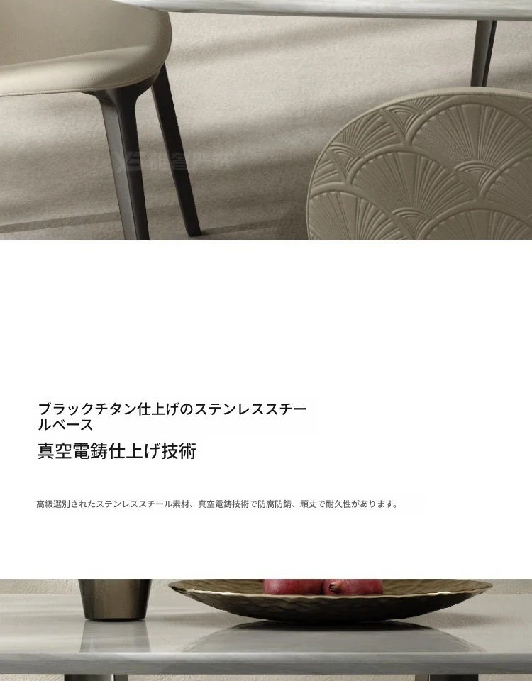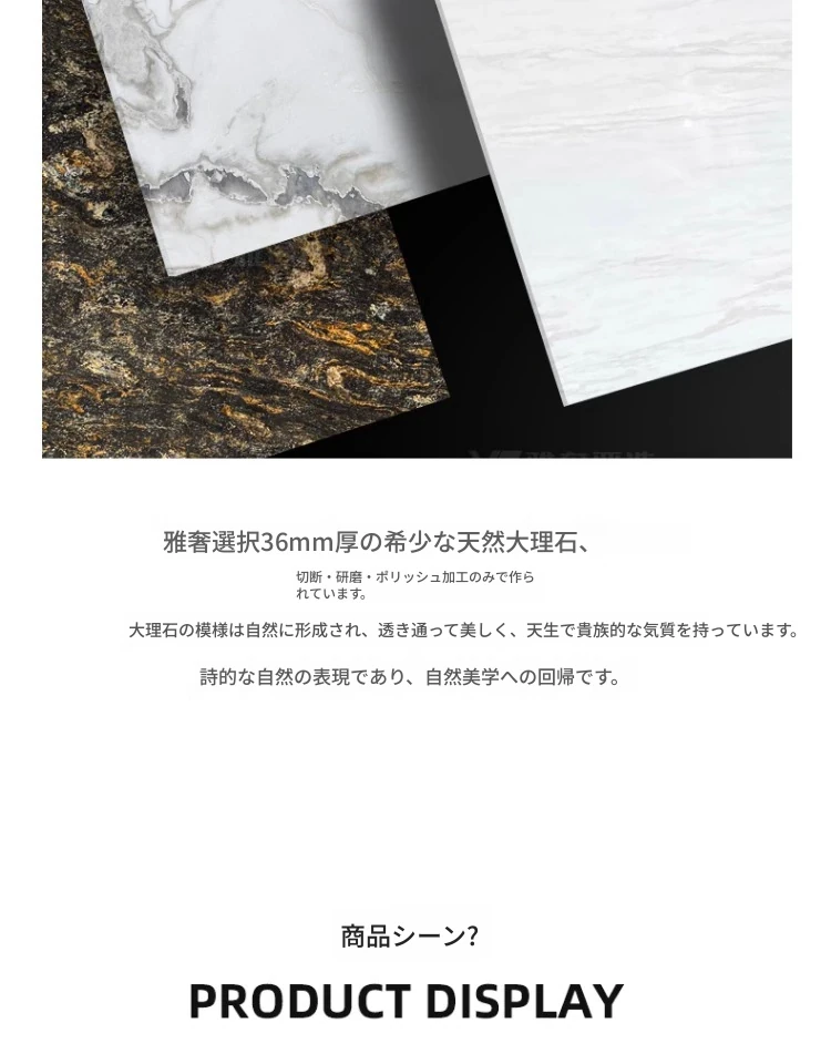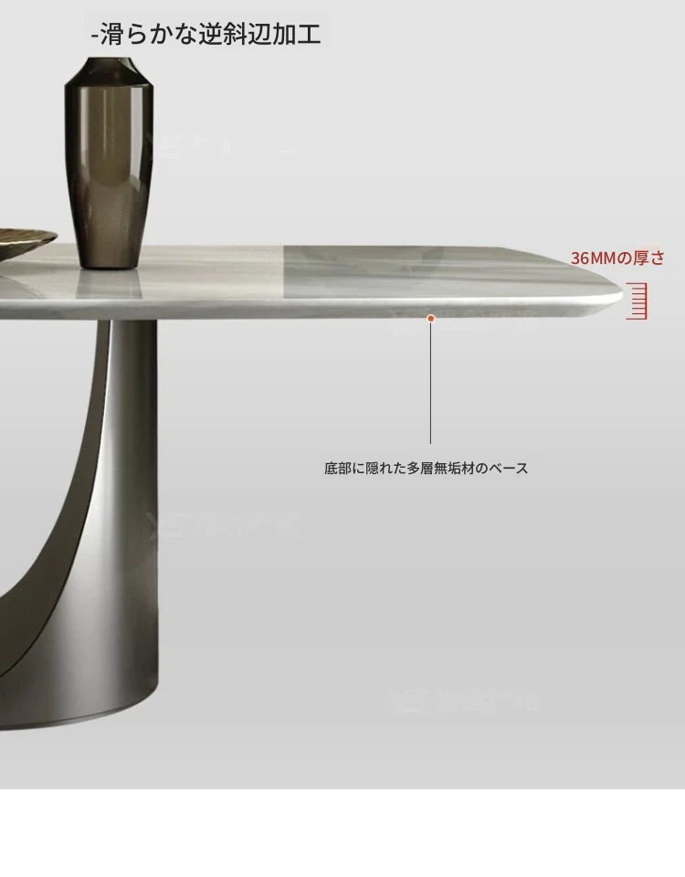 カリーアイスジャスパー天然石ロングダイニングテーブル【1.8*0.9メートル/ブラックチタン】