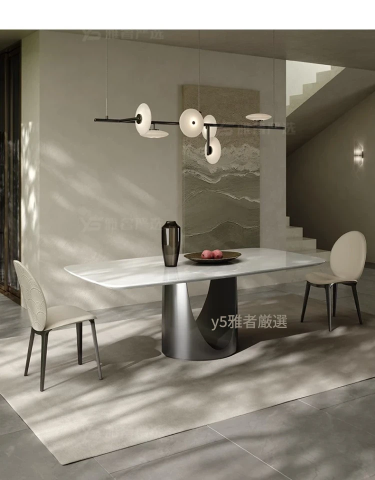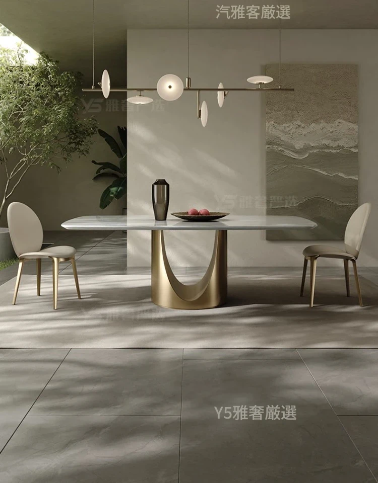 カリーアイスジャスパー天然石ロングダイニングテーブル【1.4*0.8メートル/シャンパンゴールド】
