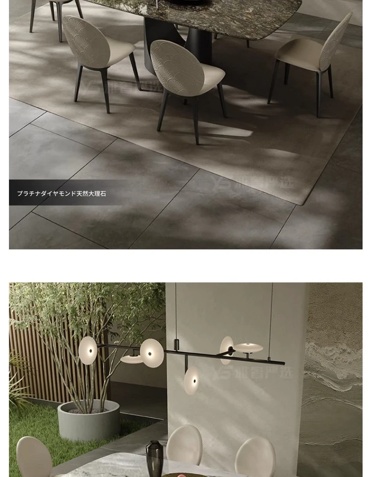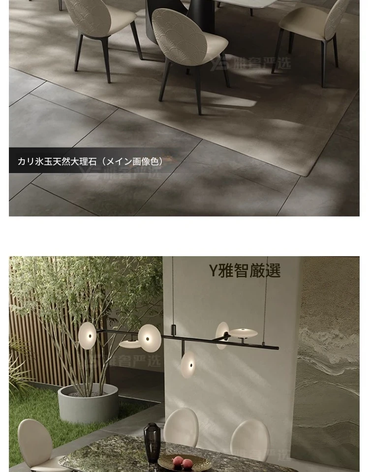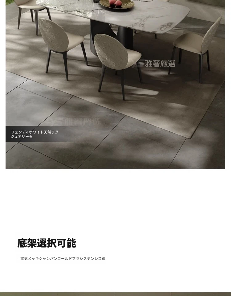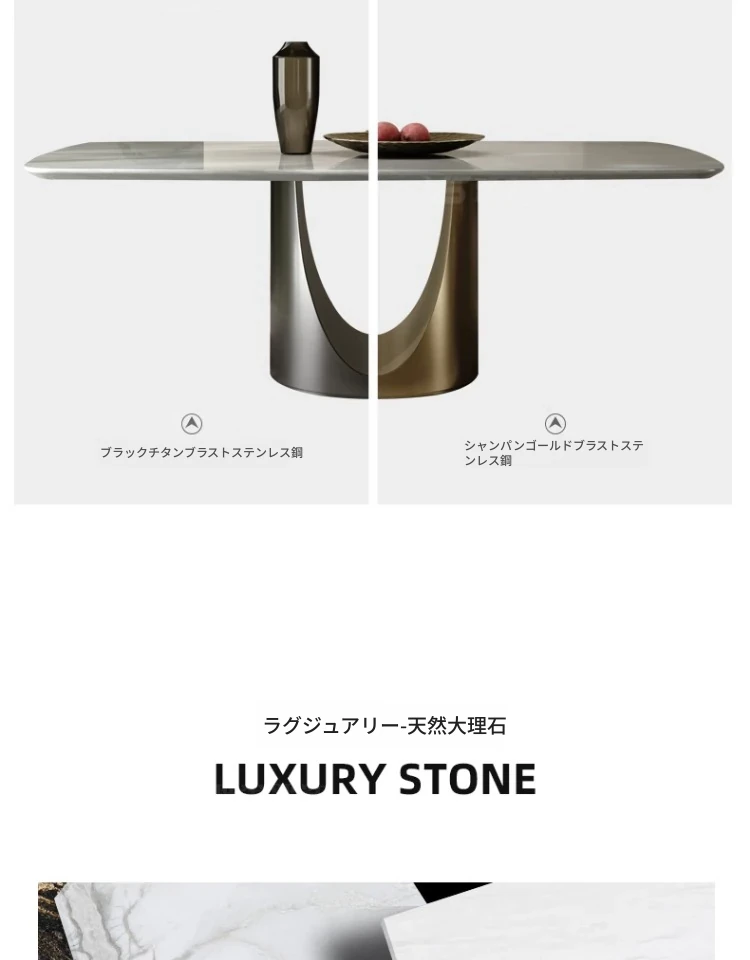 カリーアイスジャスパー天然石ロングダイニングテーブル【1.8*0.9メートル/シャンパンゴールド】