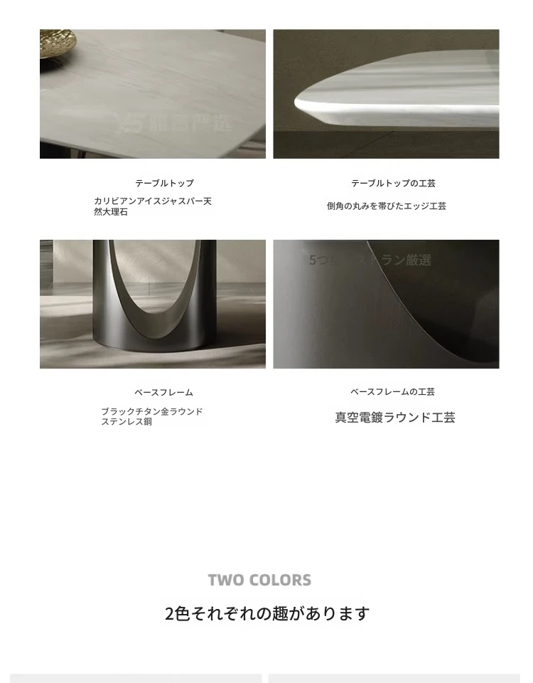 カリーアイスジャスパー天然石ロングダイニングテーブル【2.0*1.0メートル/ブラックチタン】