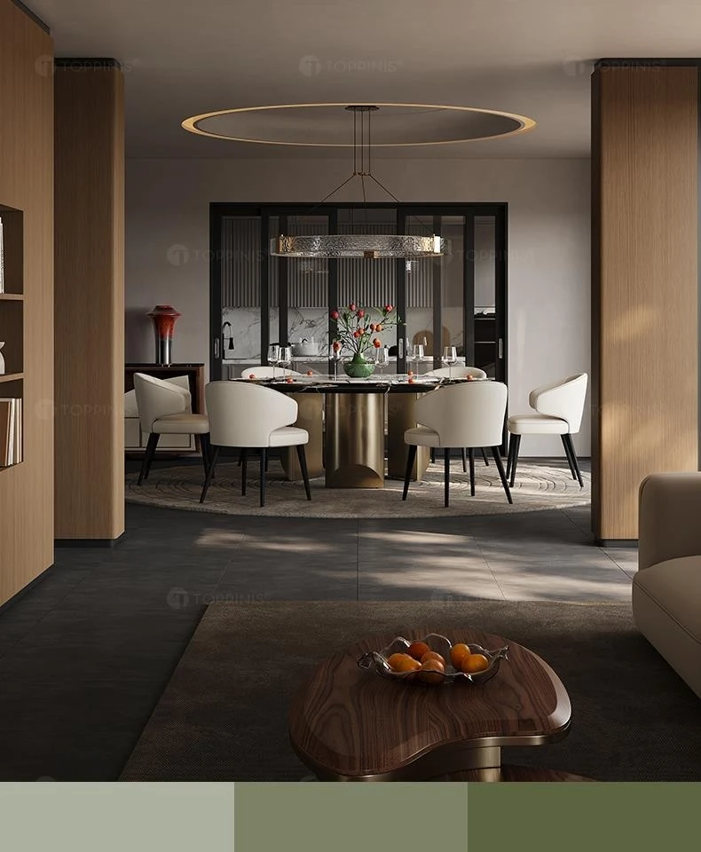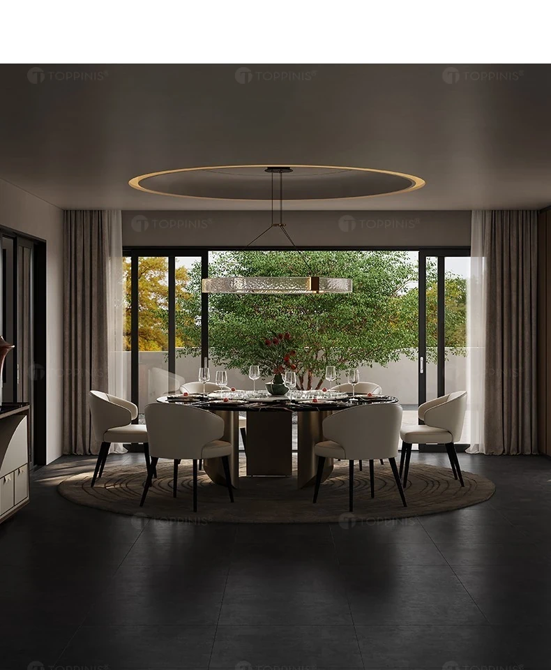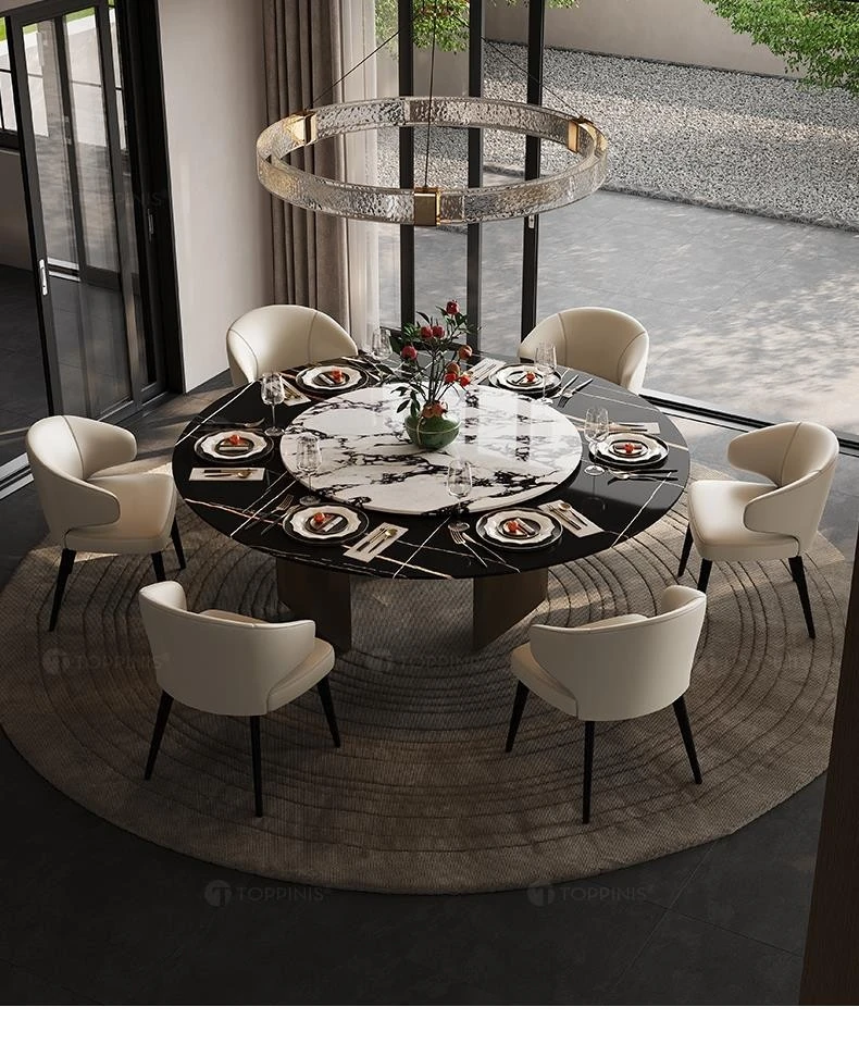 2024年新作!イタリアンスタイルのラウンドダイニングテーブル - 高級感あふれる軽やかなデザインで、どんなリビングにもぴったり。おしゃれで洗練された空間を演出し、特別なひとときをお楽しみください!