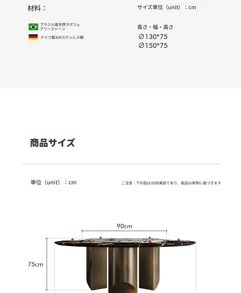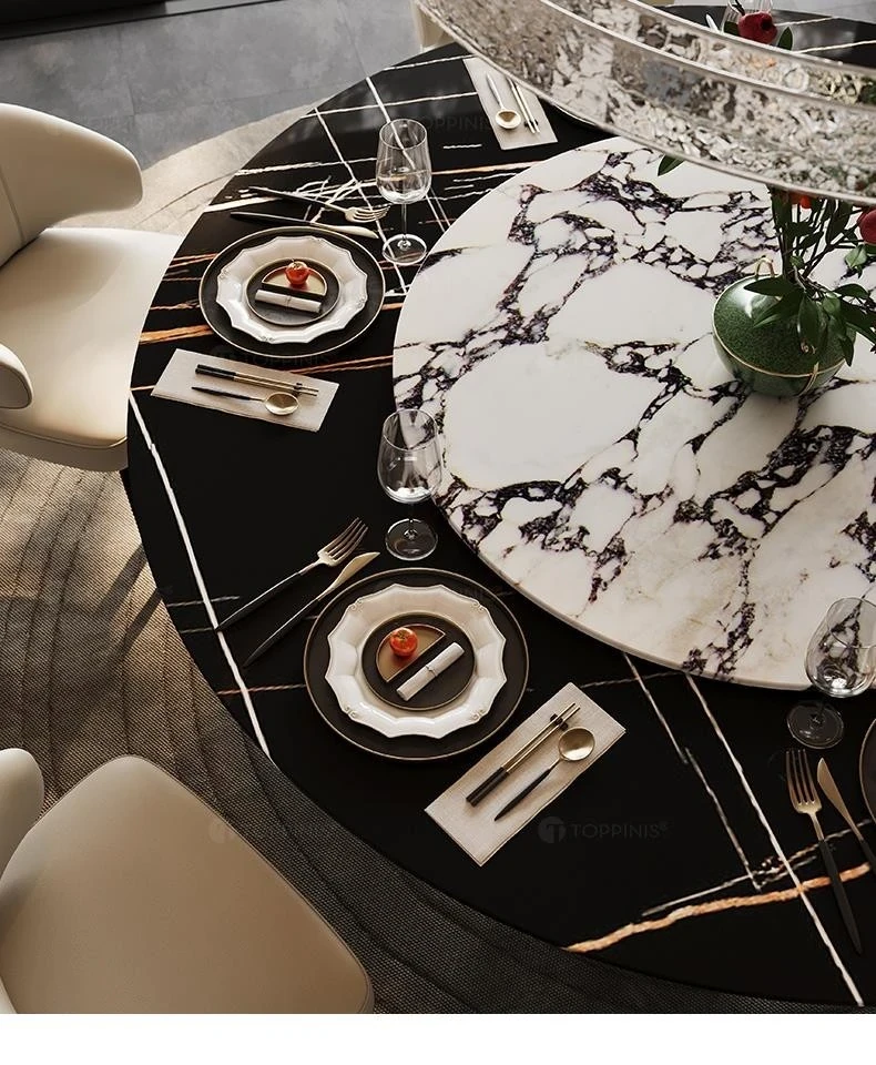デザイナー款-1.5mダイニングテーブル+0.9m回転テーブル【ブラジル輸入天然ラグジュアリー石】
