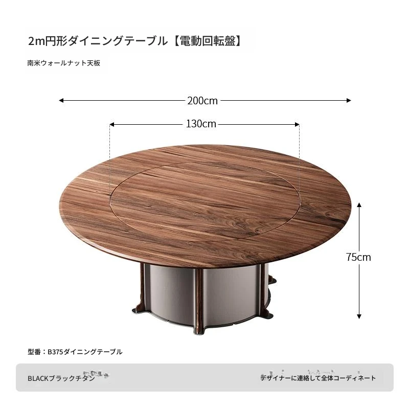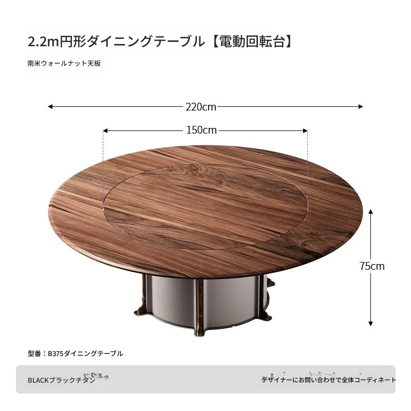 内蔵円形ダイニングテーブル/2.2M/南米ウォールナット/ブラックチタン