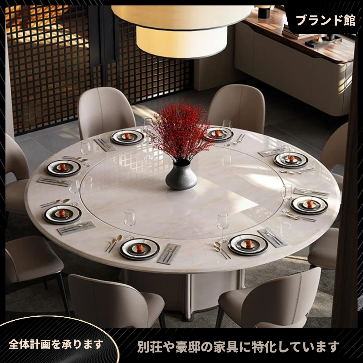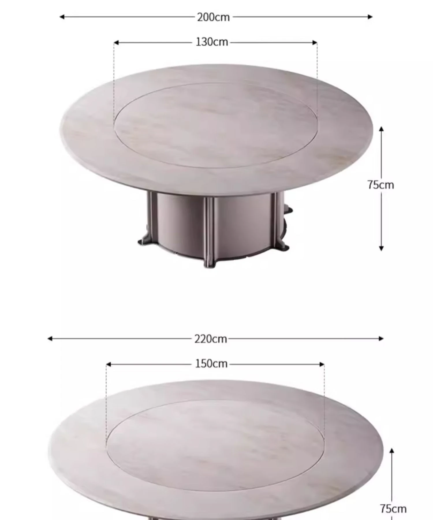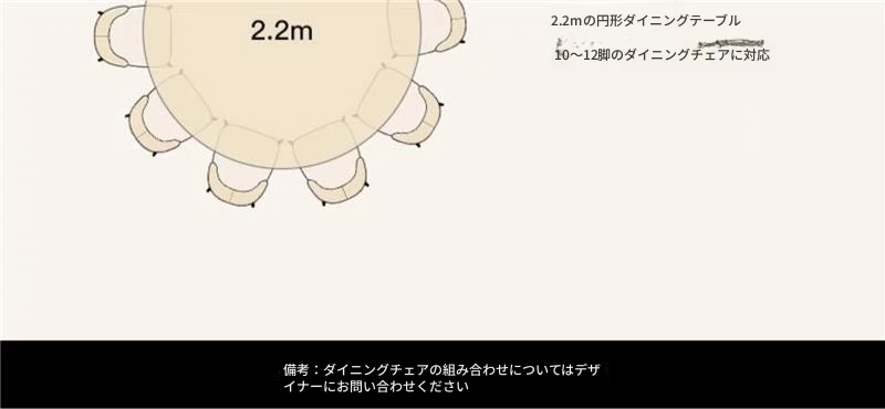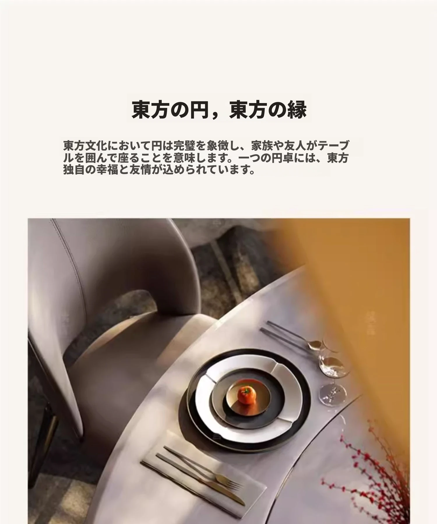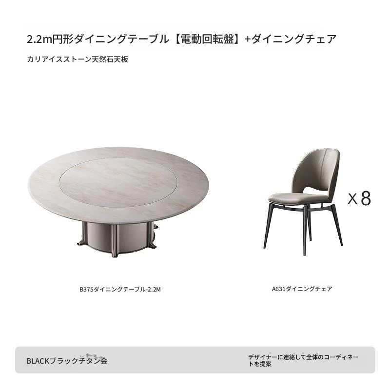 内蔵円形ダイニングテーブル/2.2M/カリアイスストーン+A631ダイニングチェア/超ファイバー皮*8/ブラックチタン