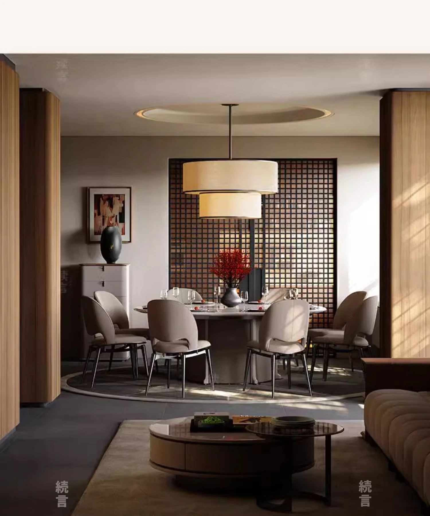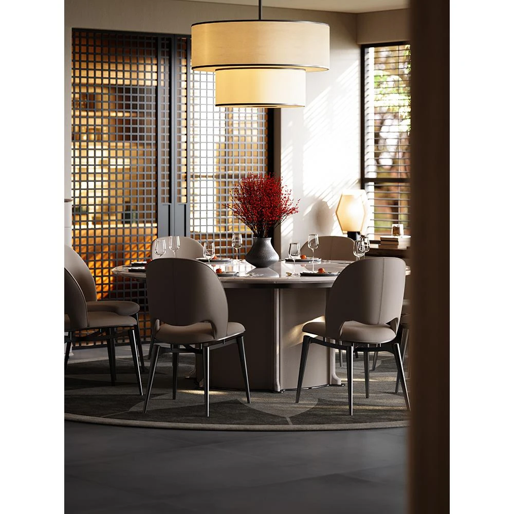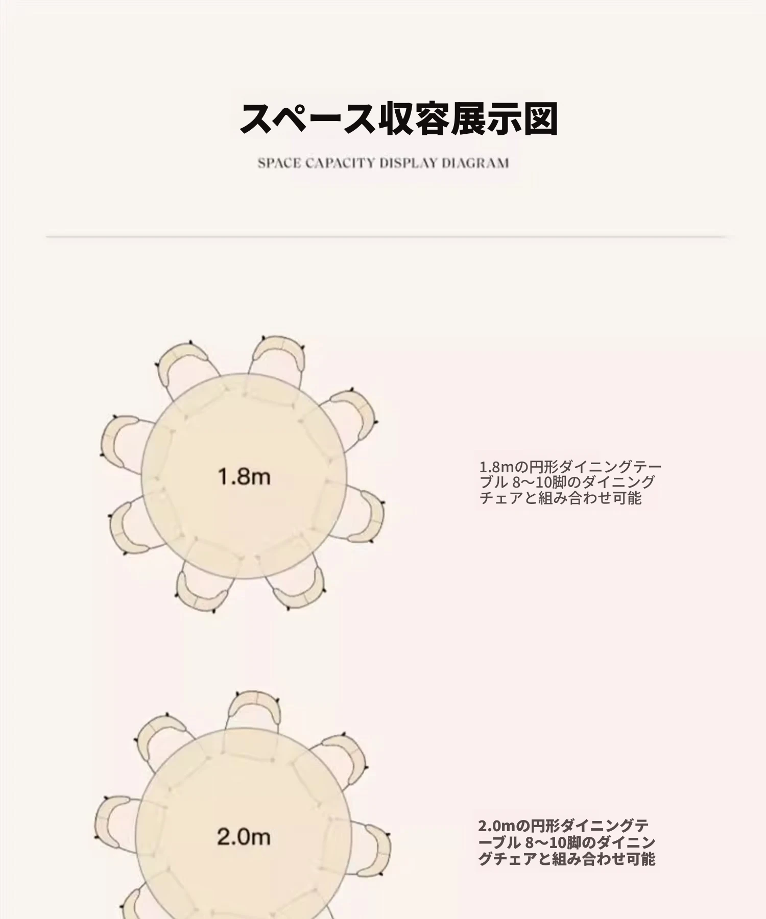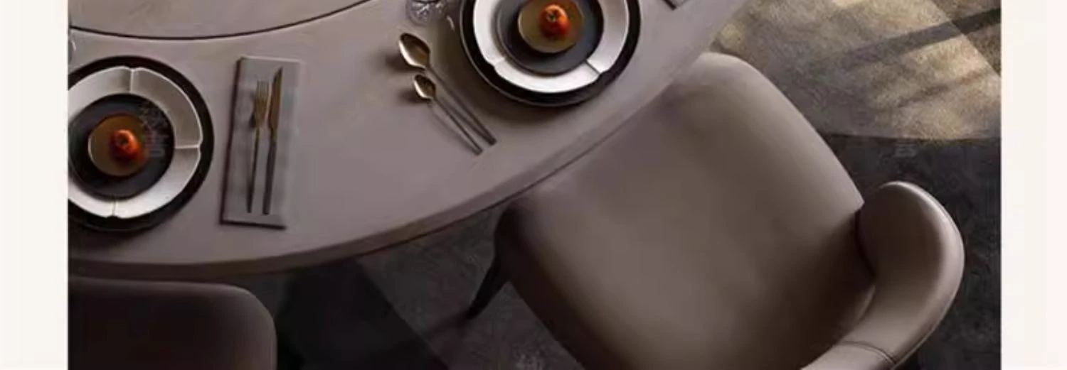 内蔵円形ダイニングテーブル/2.2M/カリアイスストーン+A631ダイニングチェア/超ファイバー皮*8/ブラックチタン