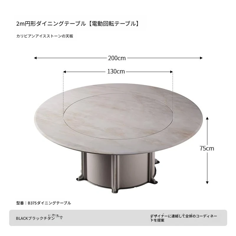 内蔵円形ダイニングテーブル/2.0M/カリアイスストーン/ブラックチタン