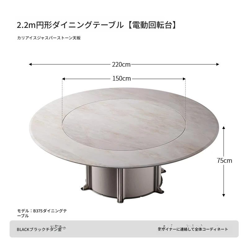 内蔵円形ダイニングテーブル/2.2M/カリアイスストーン/ブラックチタン