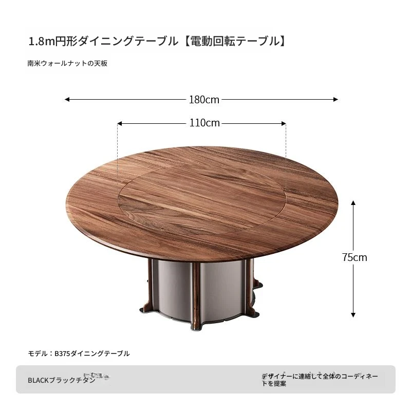 内蔵円形ダイニングテーブル/1.8M/南米ウォールナット/ブラックチタン