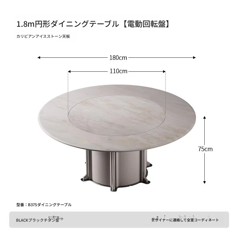 内蔵円形ダイニングテーブル/1.8M/カリアイスストーン/ブラックチタン
