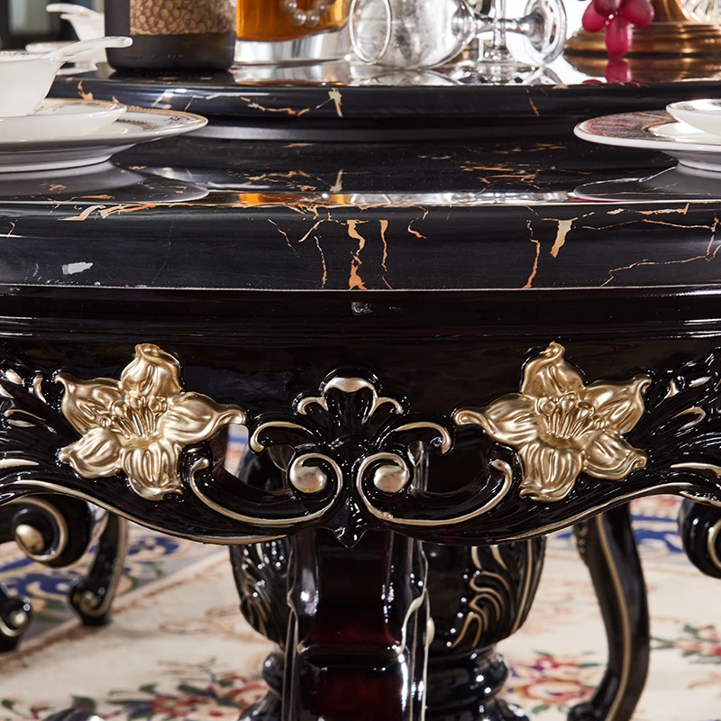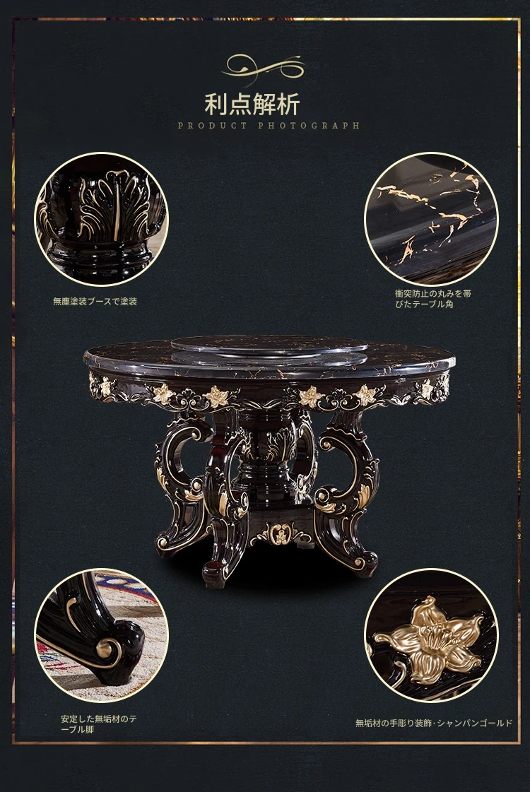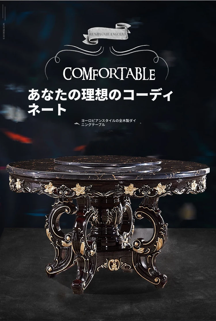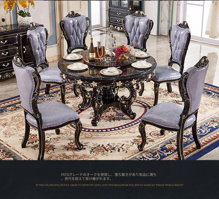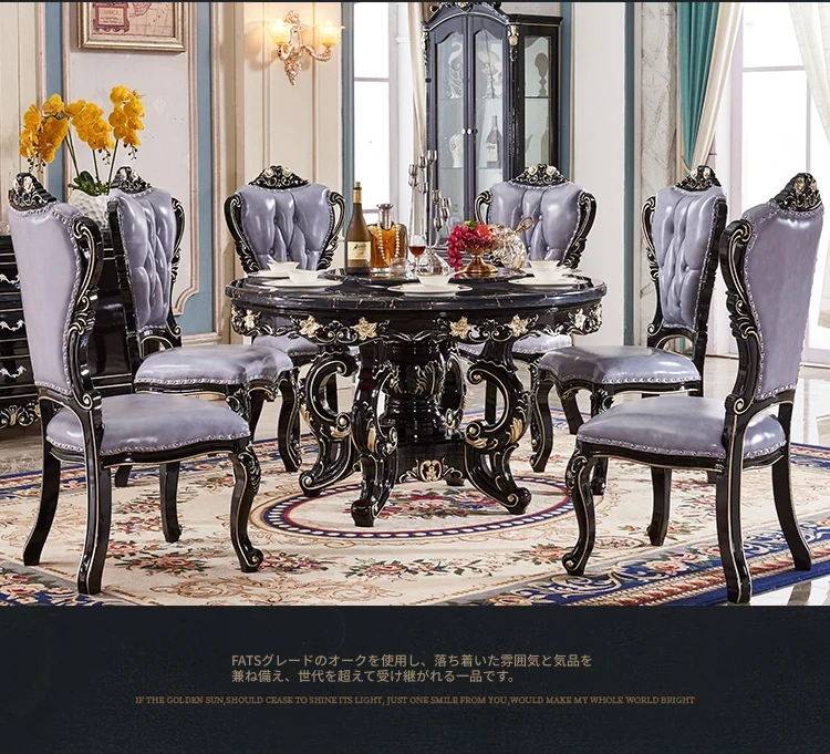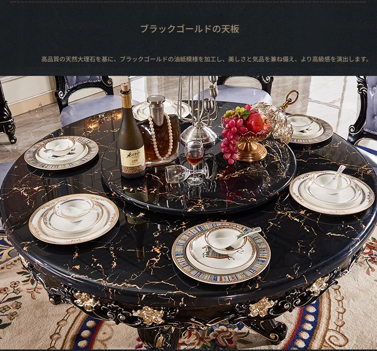 大理石製のエレガントなダイニングテーブル&チェアセット | 高品質な無垢材使用 | 欧風デザインの丸テーブル | 家庭用アメリカンスタイル | 食事を楽しむための完璧なテーブルセット!