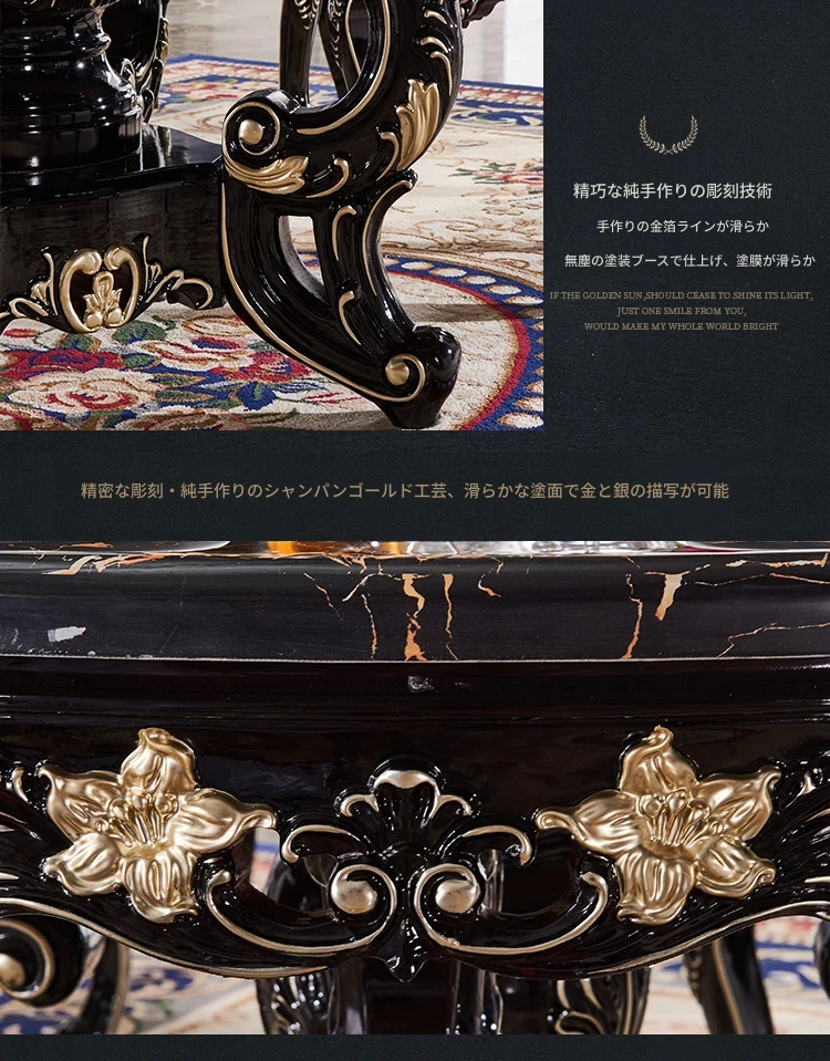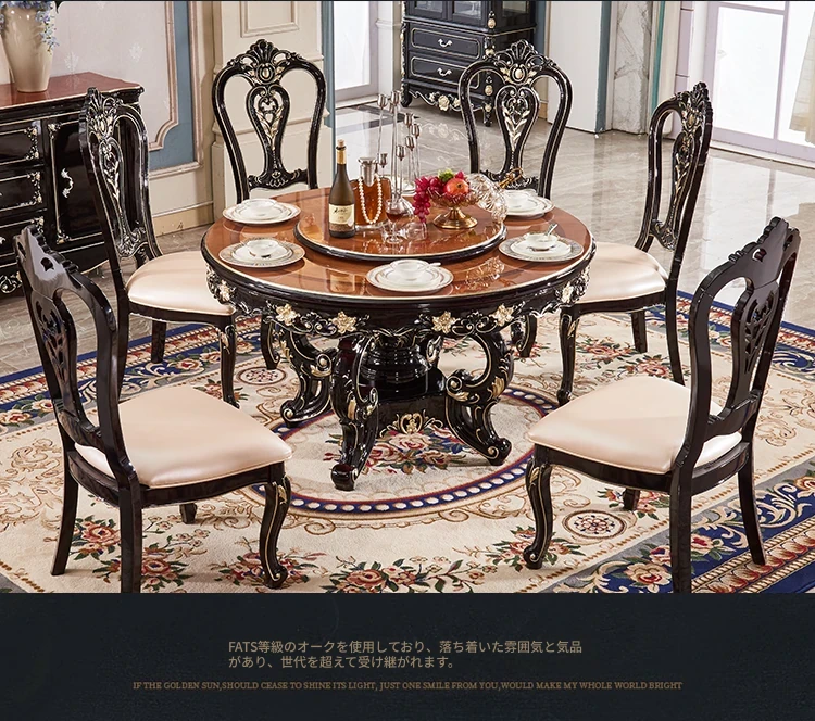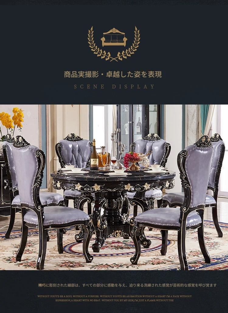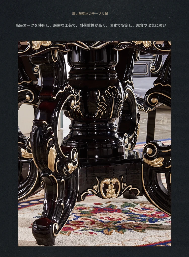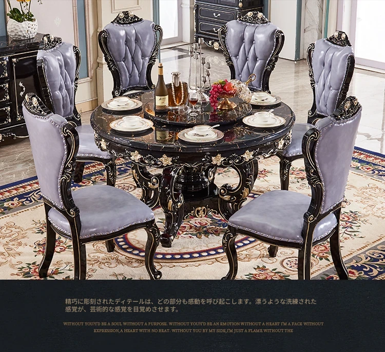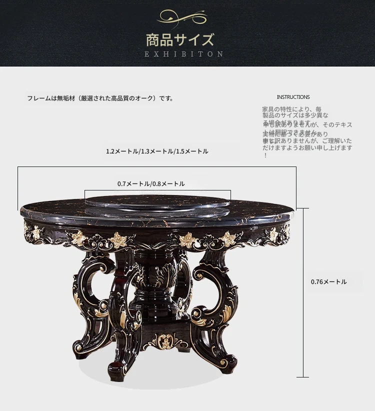 大理石製のエレガントなダイニングテーブル&チェアセット | 高品質な無垢材使用 | 欧風デザインの丸テーブル | 家庭用アメリカンスタイル | 食事を楽しむための完璧なテーブルセット!