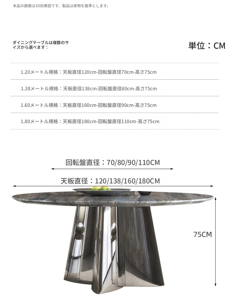 100%輸入純天然ラグジュアリーストーン円卓1.2M【回転盤あり】【偽物は10倍返し】