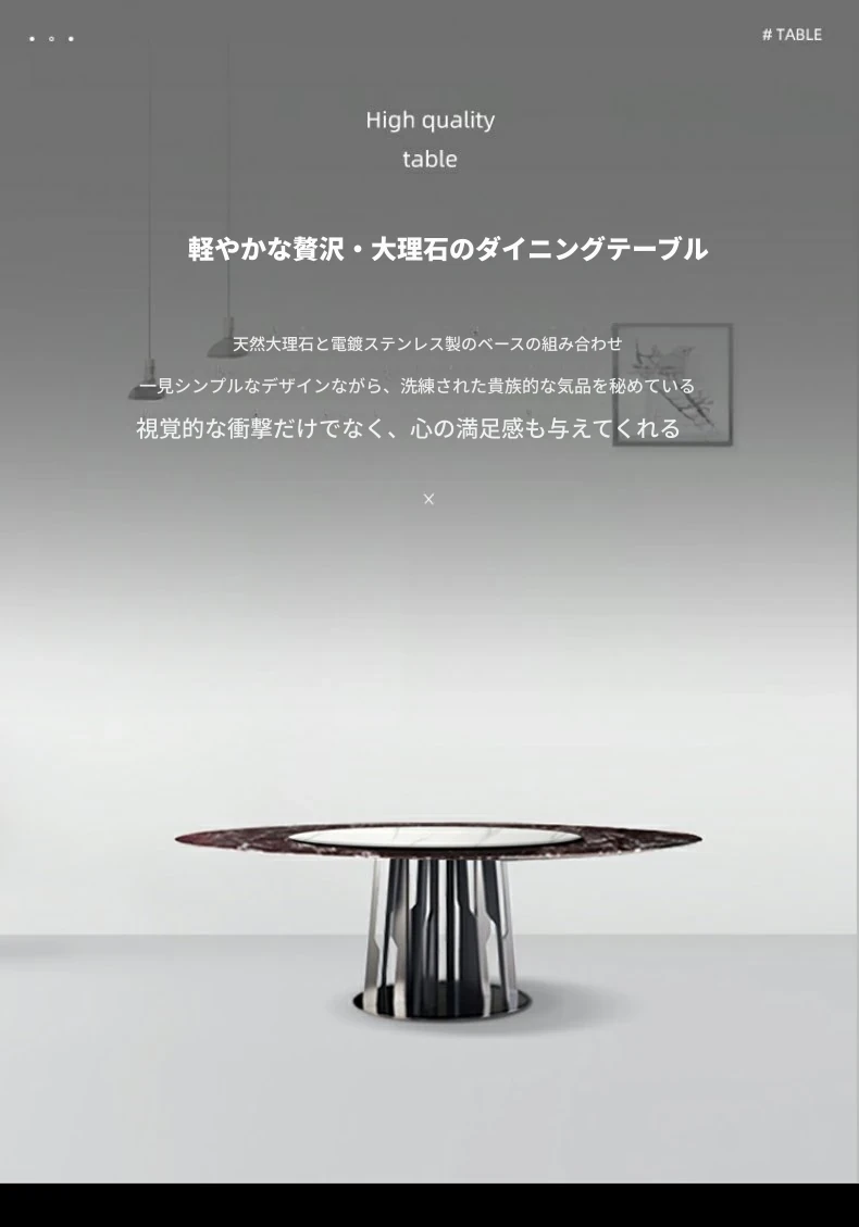 イタリアンミニマルデザイン大理石ダイニングテーブル2023新作!高級感溢れるラグジュアリーな円形テーブルで、広々とした邸宅にぴったり。スタイリッシュなインテリアを演出し、特別なひとときをお届けします。