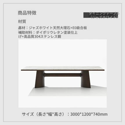 3.0メートルダイニングテーブル(ジャズホワイト大理石)