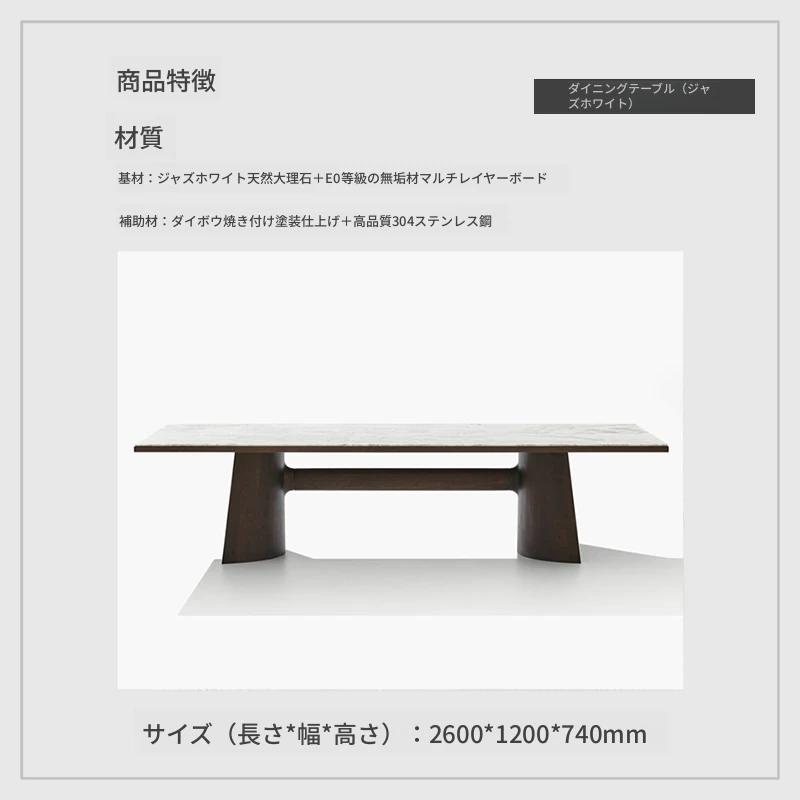 2.6メートルダイニングテーブル(ジャズホワイト大理石)
