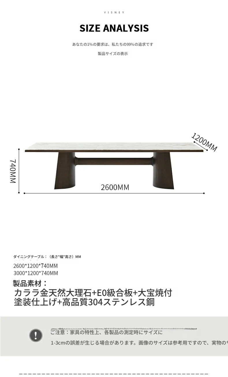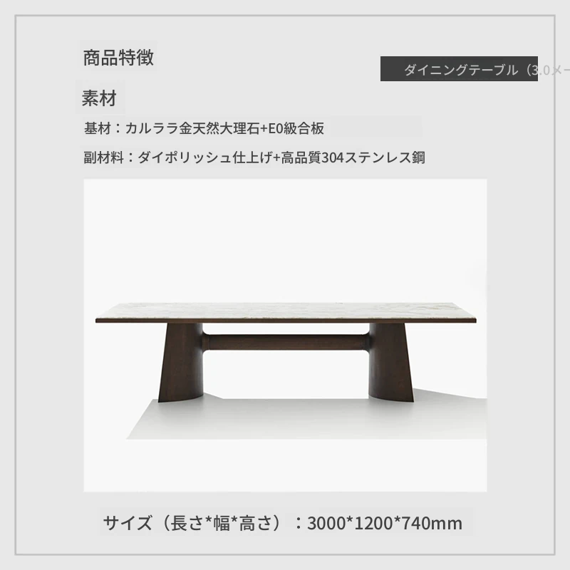 3.0メートルダイニングテーブル(カララゴールド大理石)