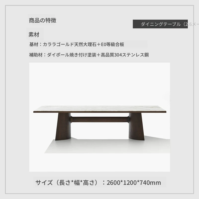 2.6メートルダイニングテーブル(カララゴールド大理石)